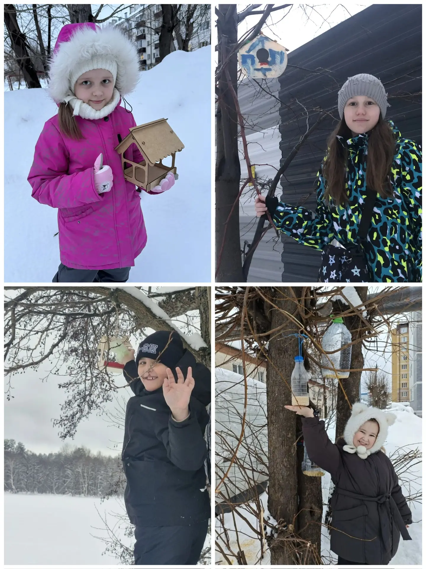 Ребята сделали со своими родителями кормушки, развесили из в парках и своих дворах.
