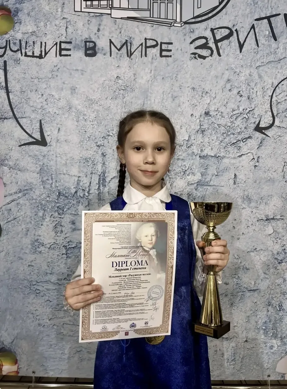 Поздравляем ученицу 2 «В» класса с ПОБЕДОЙ в Всероссийском конкурсе-фестивале искусств «Большая страна» в составе младшего хора «Радужные нотки», проходившем в г. Санкт-Петербург👏👏🏆