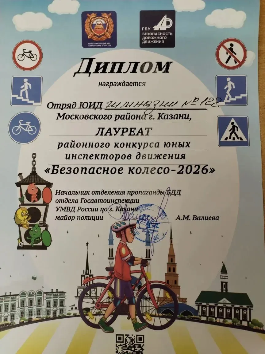 🚦 Отряд ЮИД гимназии стал лауреатом районного конкурса юных инспекторов движения «Безопасное колесо-2026»!