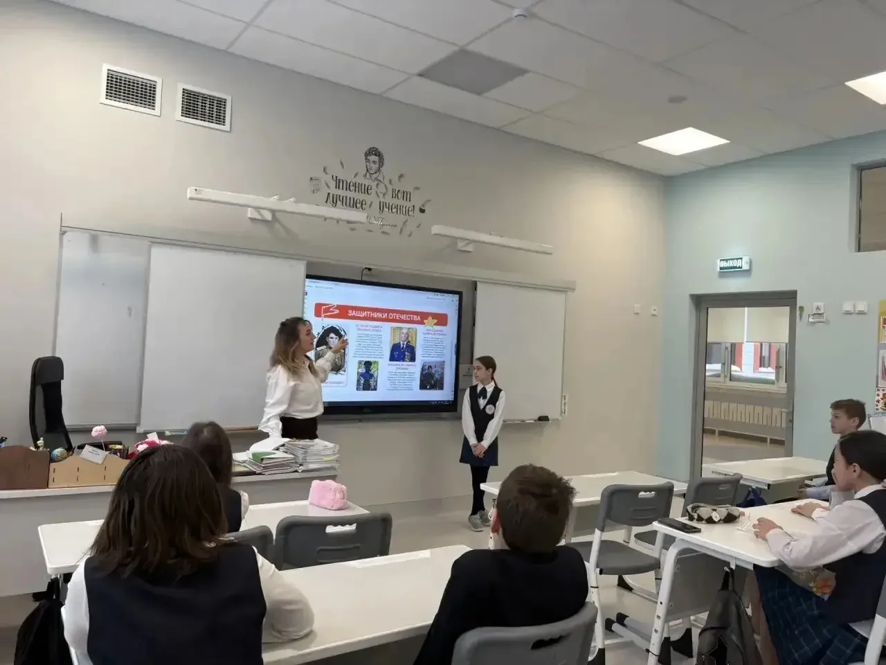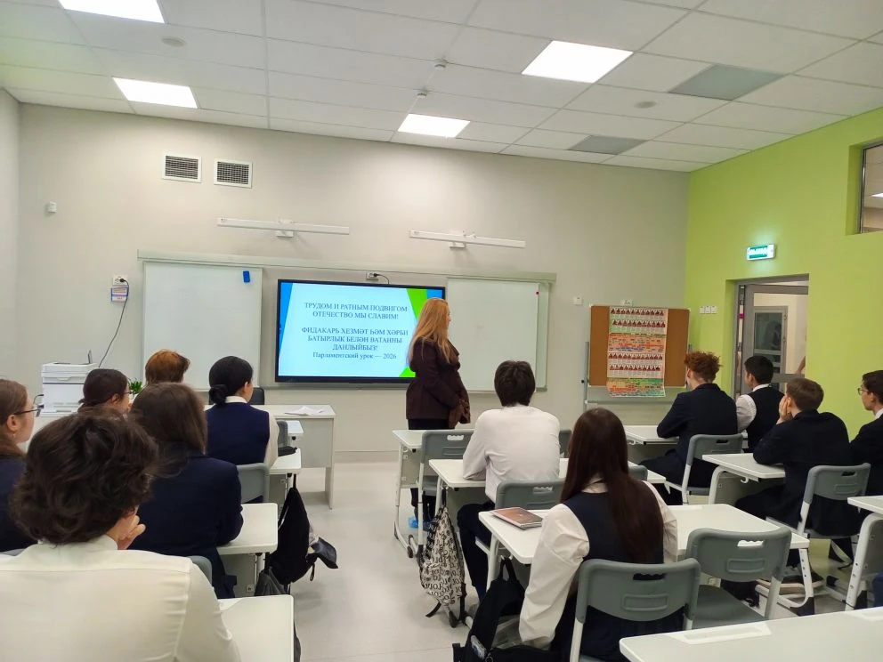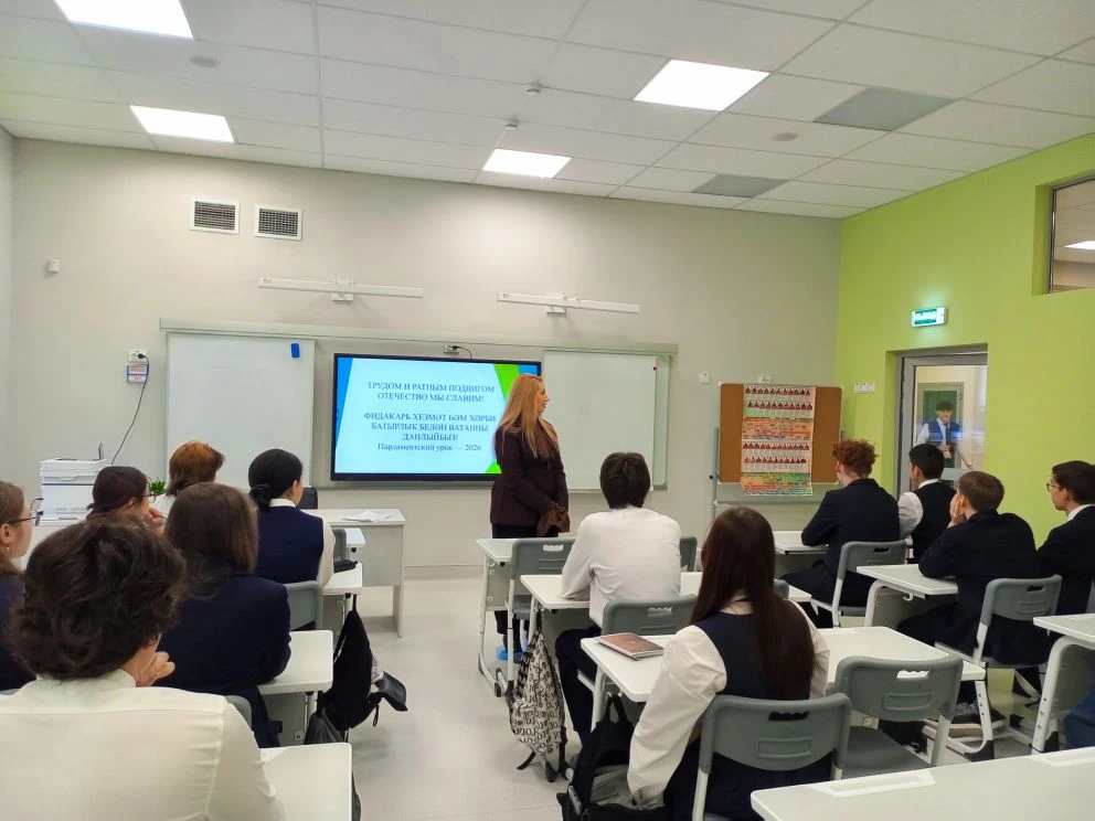 В понедельник для 10-9 классов прошел парламентский урок на тему «Трудом и ратным подвигом Отечество мы славим!»