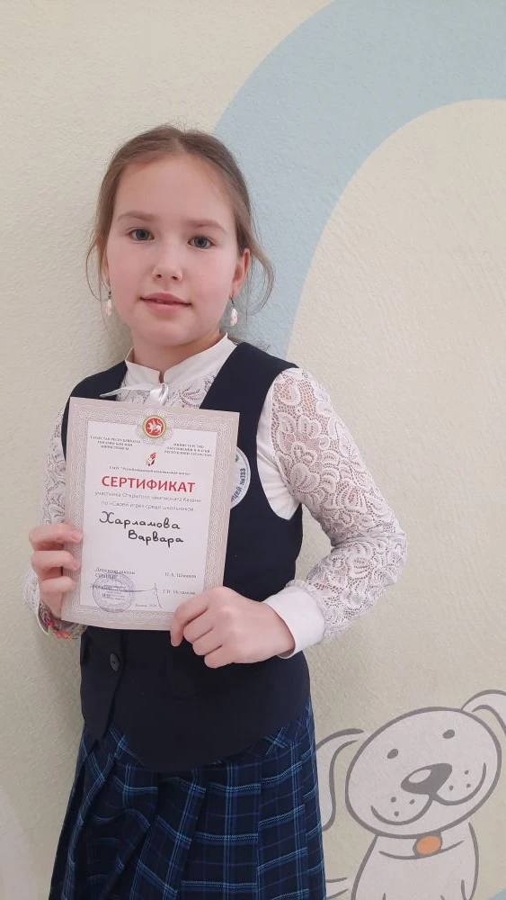 15 февраля ученица 4 Б класса Харламова Варвара ( учитель Даминова А.А) приняла участие на Открытом чемпионате Казани по " Своей игре" и вышла в финал. Поздравляем!
