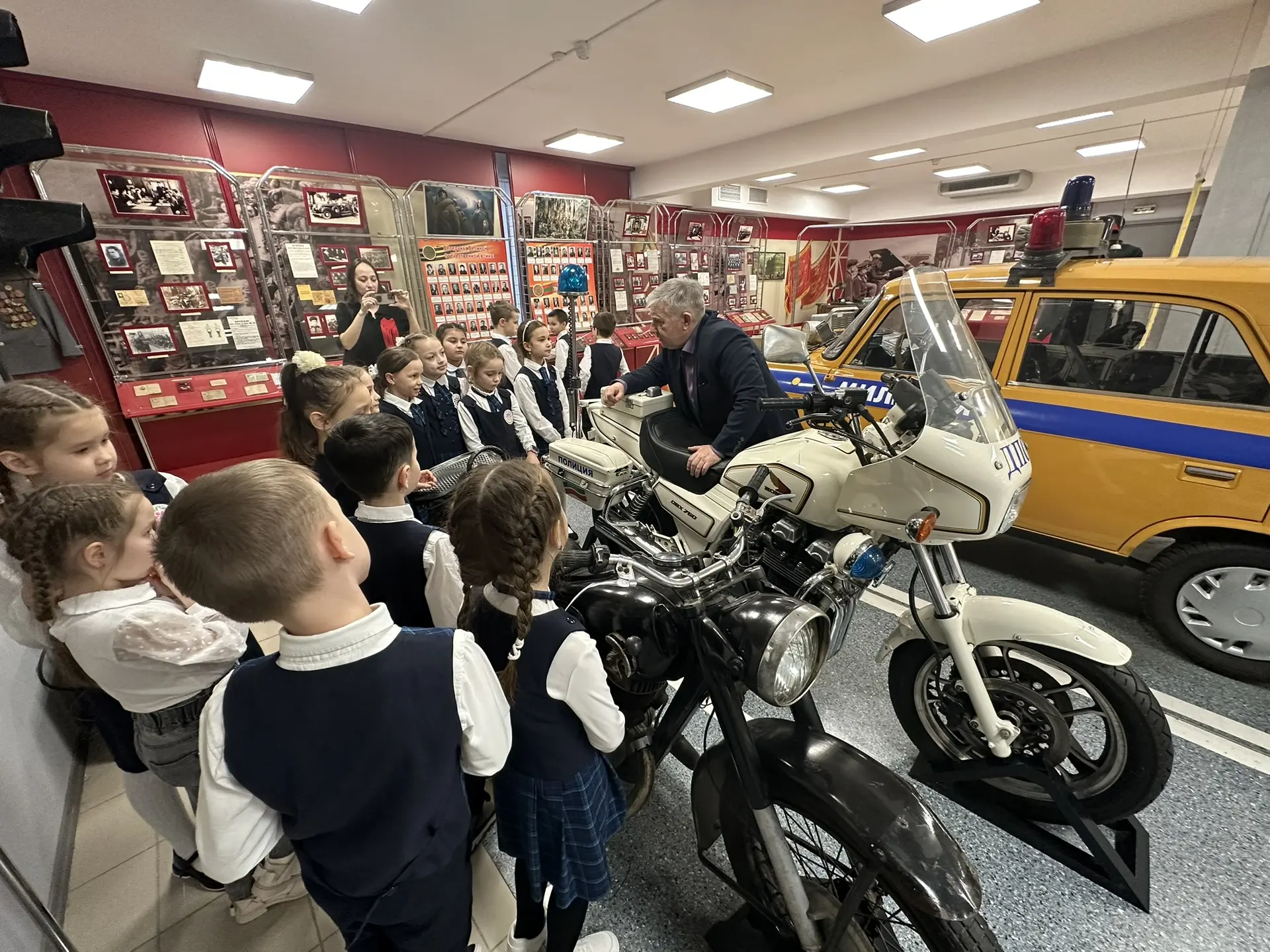 Музейная экспозиция впечатлила всех! Дети с восторгом изучали старинные автомобили и мотоциклы, которые когда-то патрулировали дороги.