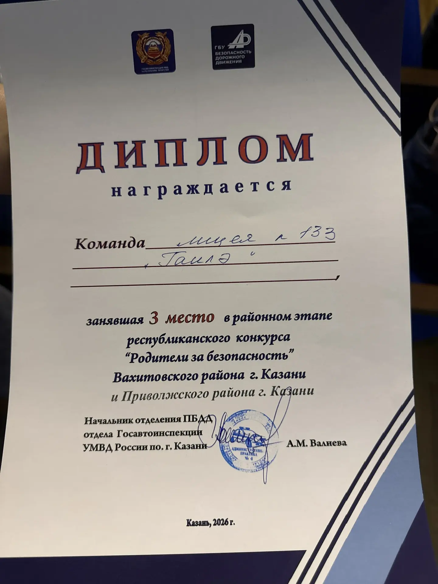 Ученики и родители 3Б класса приняли участие в районном этапе республиканского конкурса «Родители за безопасность» и заняли 3 место 🏆