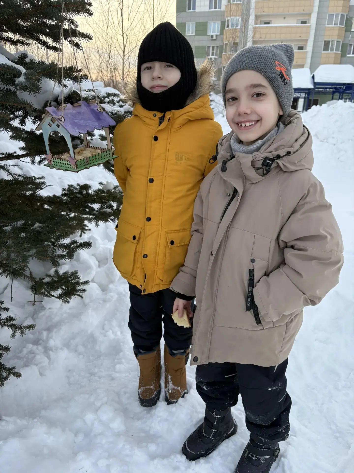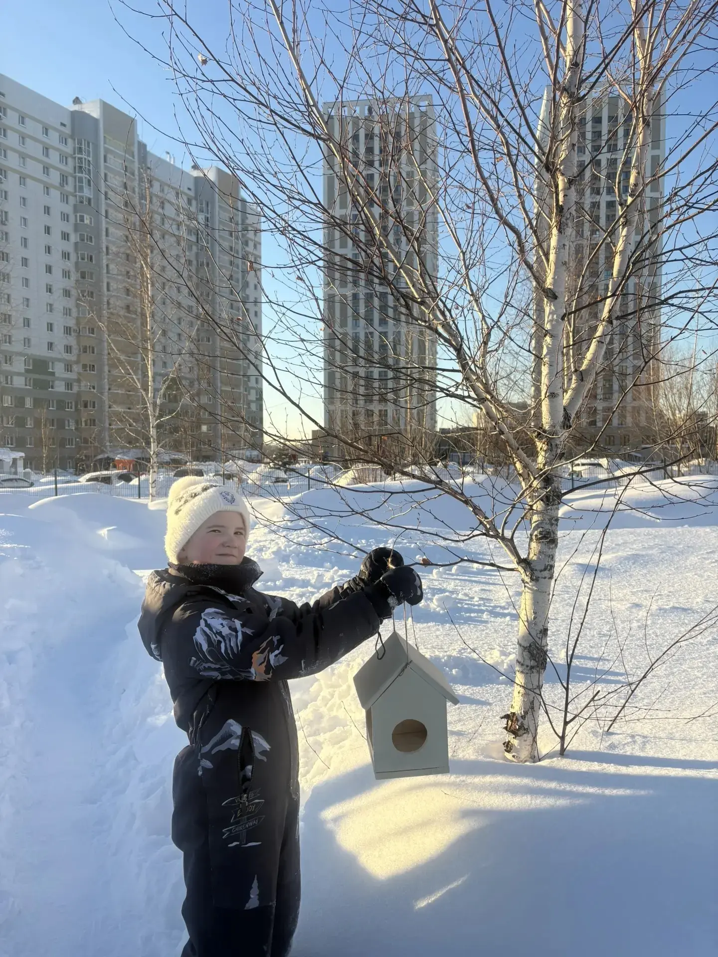 Готовые птичьи столовые ребята развесили во дворах своих домов. Теперь каждый день, выходя на прогулку, юные защитники природы заботятся о том, чтобы в их кормушках всегда был свежий корм.