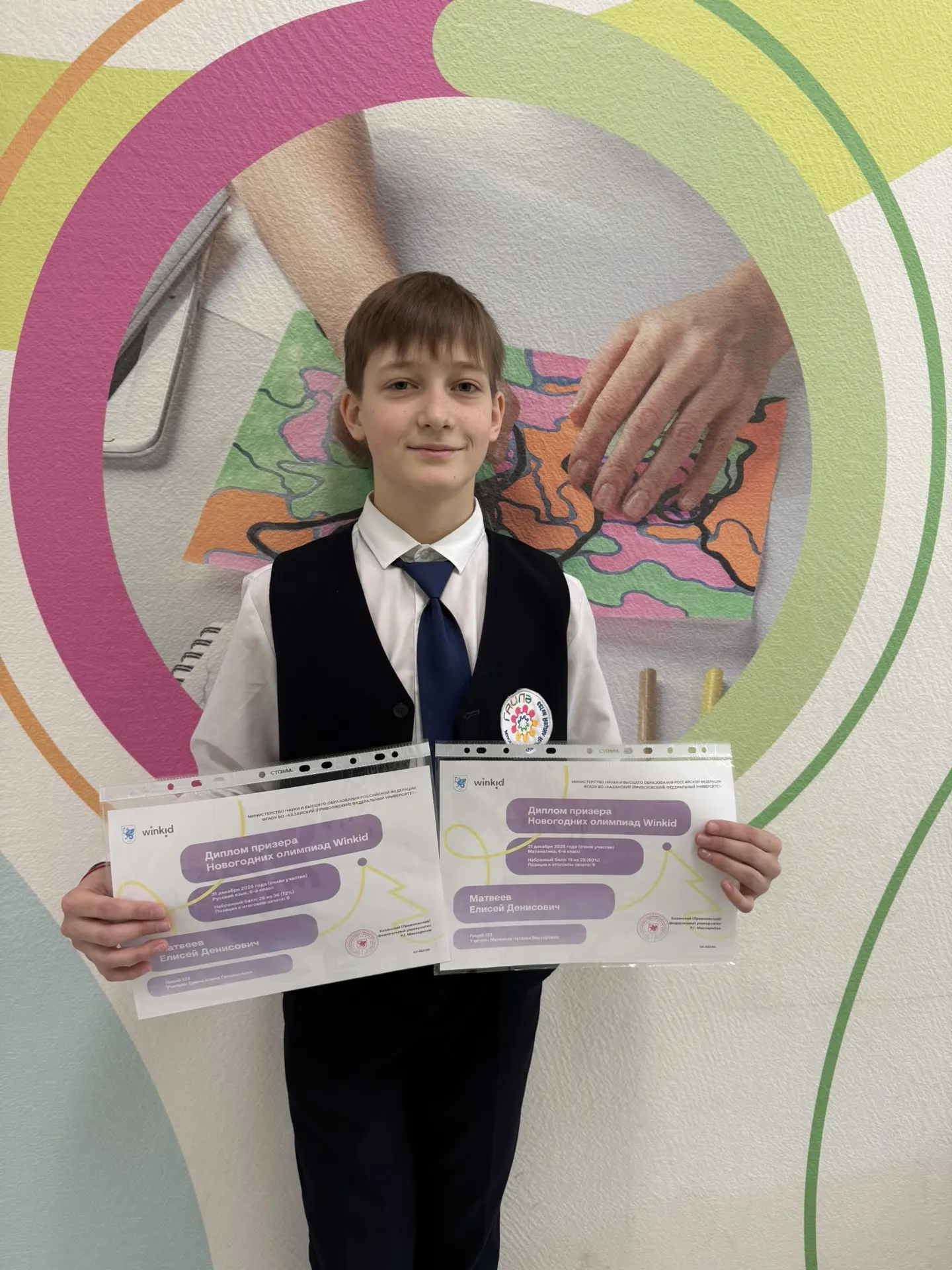 Ученик 6А класса Матвеев Елисей стал призёром сразу в двух дисциплинах на Новогодних олимпиадах Winkid от Казанского федерального университета.