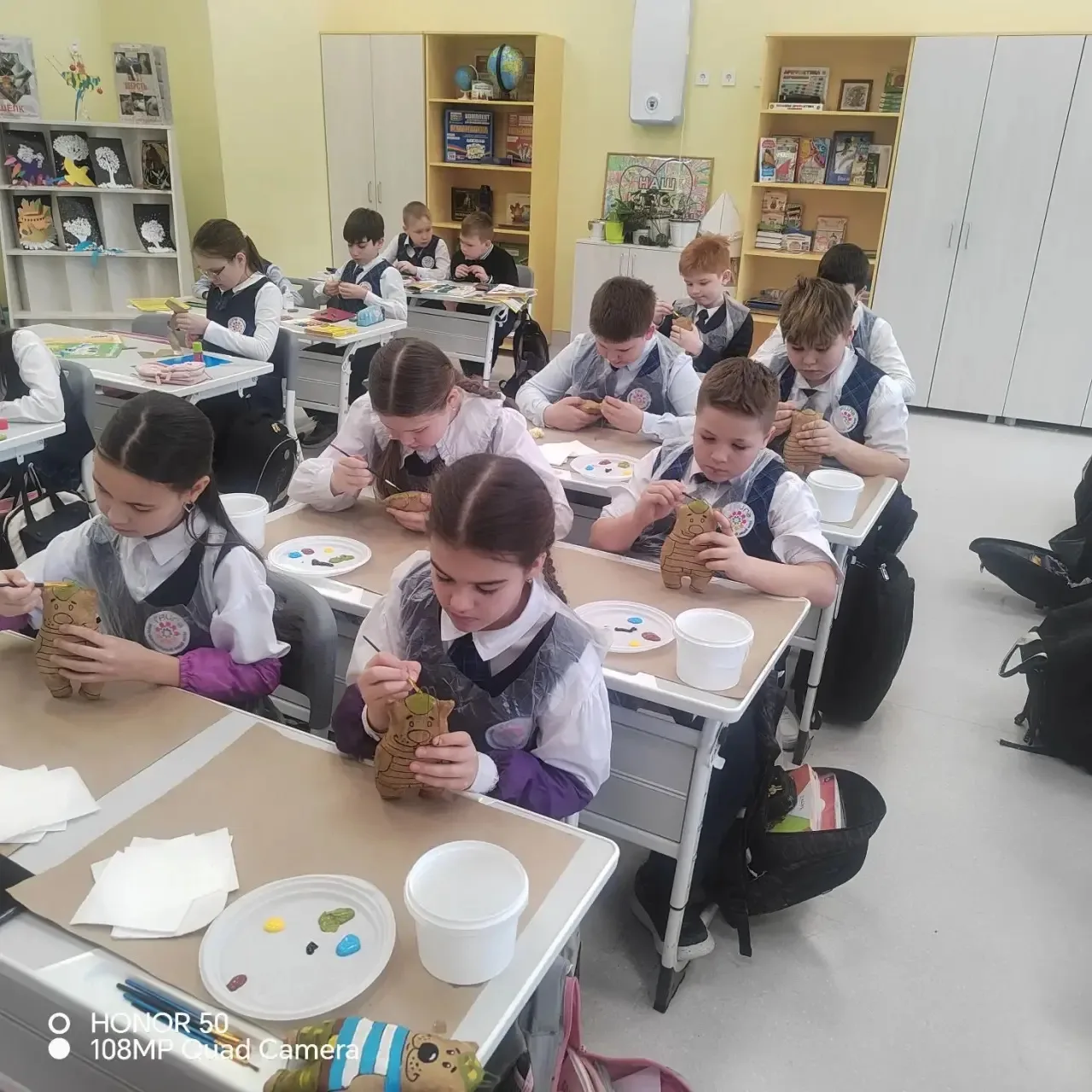 🙌🏻После презентации ученики приступили к практической части занятия — украшению кувшина. Результаты их работы оказались очень красивыми.