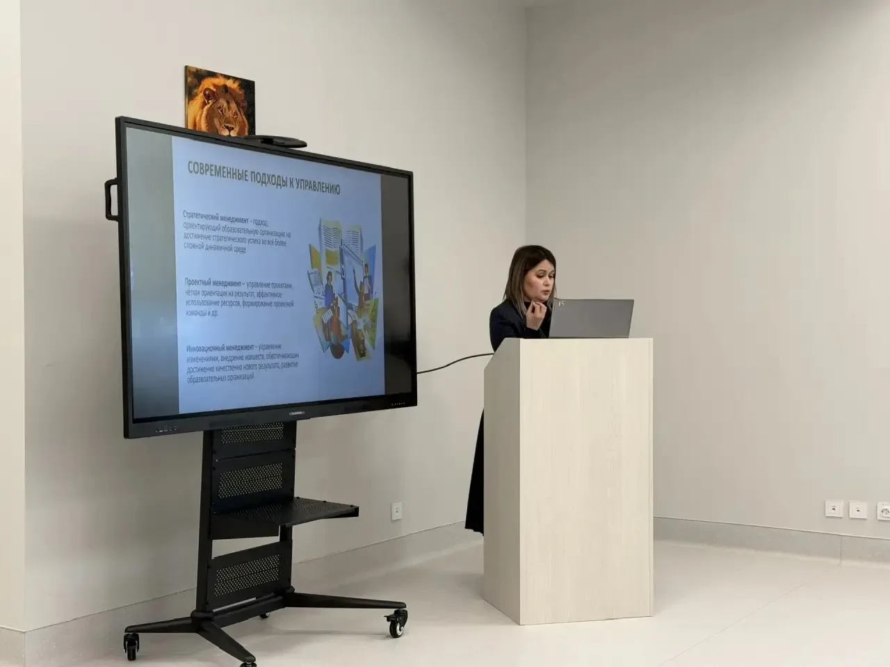Ерина Алина Геннадьевна, заместитель директора по учебной работе, выступила с докладом на тему: «Изменения во внутренней системе оценки качества образования в связи с переходом на обновленные ФГОС и ФООП». Салахова Ландыш Ихтирамовна, заместитель директора по учебной работе, поделилась опытом использования в управленческой деятельности информационных и цифровых технологий. Козина Руфина Ульфатовна, заместитель директора по УР, выступила на тему: «Циклограмма заместителя директора, курирующего вопросы управления качеством образования». Девицкая Нина Юрьевна, заместитель директора по УР, выступила с докладом на тему: «Управление развитием кадров». Хадиева Радмила Рамисовна, заместитель директора по УР, выступила со своей темой: «Образовательная программа и критерии оценивания в начальной школе: опыт МБОУ «Многопрофильный лицей №133 «Гаилә».