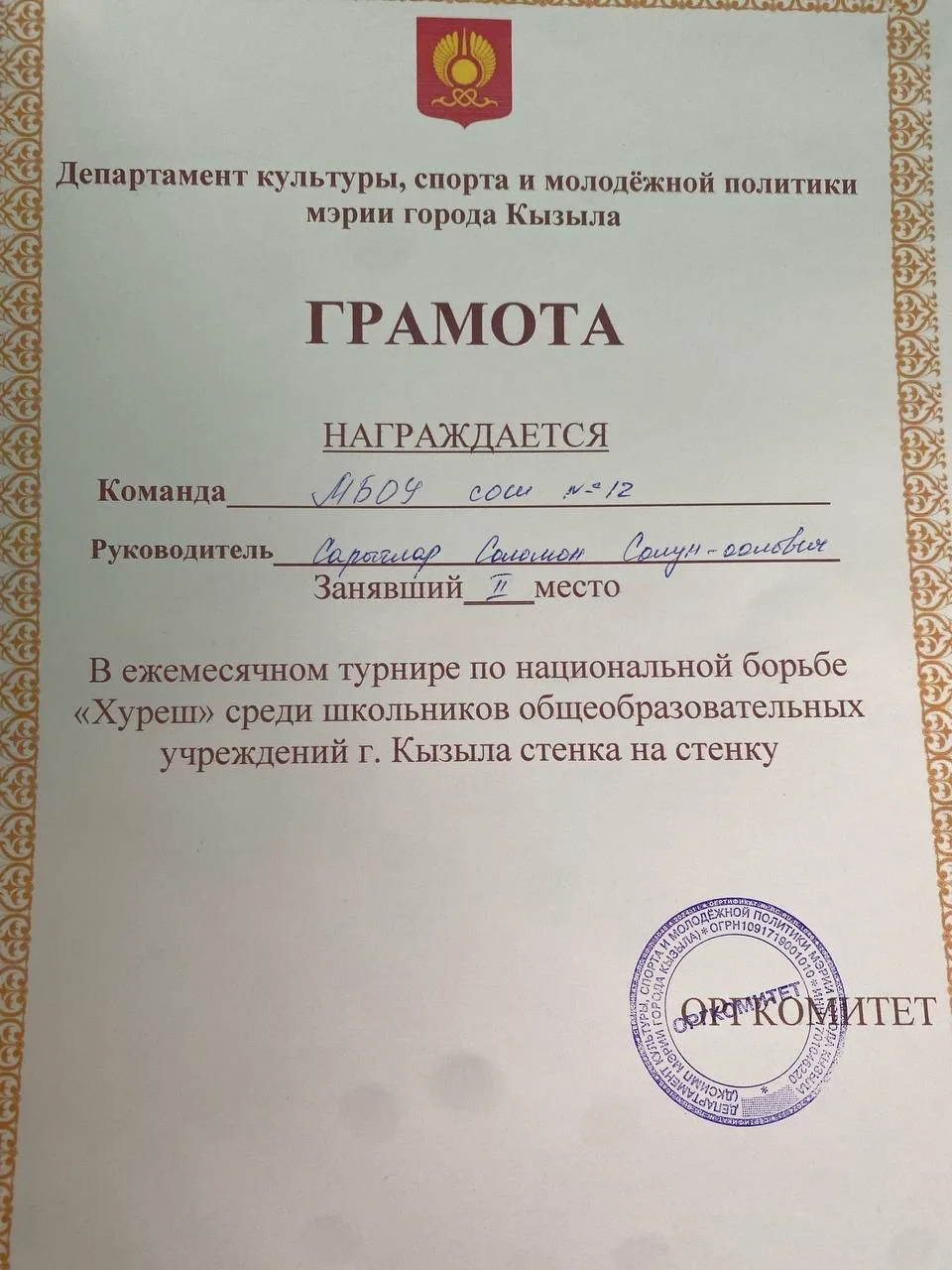 Муниципальное бюджетное общеобразовательное учреждение "Средняя общеобразовательная школа №12 имени Воина-интернационалиста Юрия Валерьевича Кара-оола города Кызыла Республики Тыва"