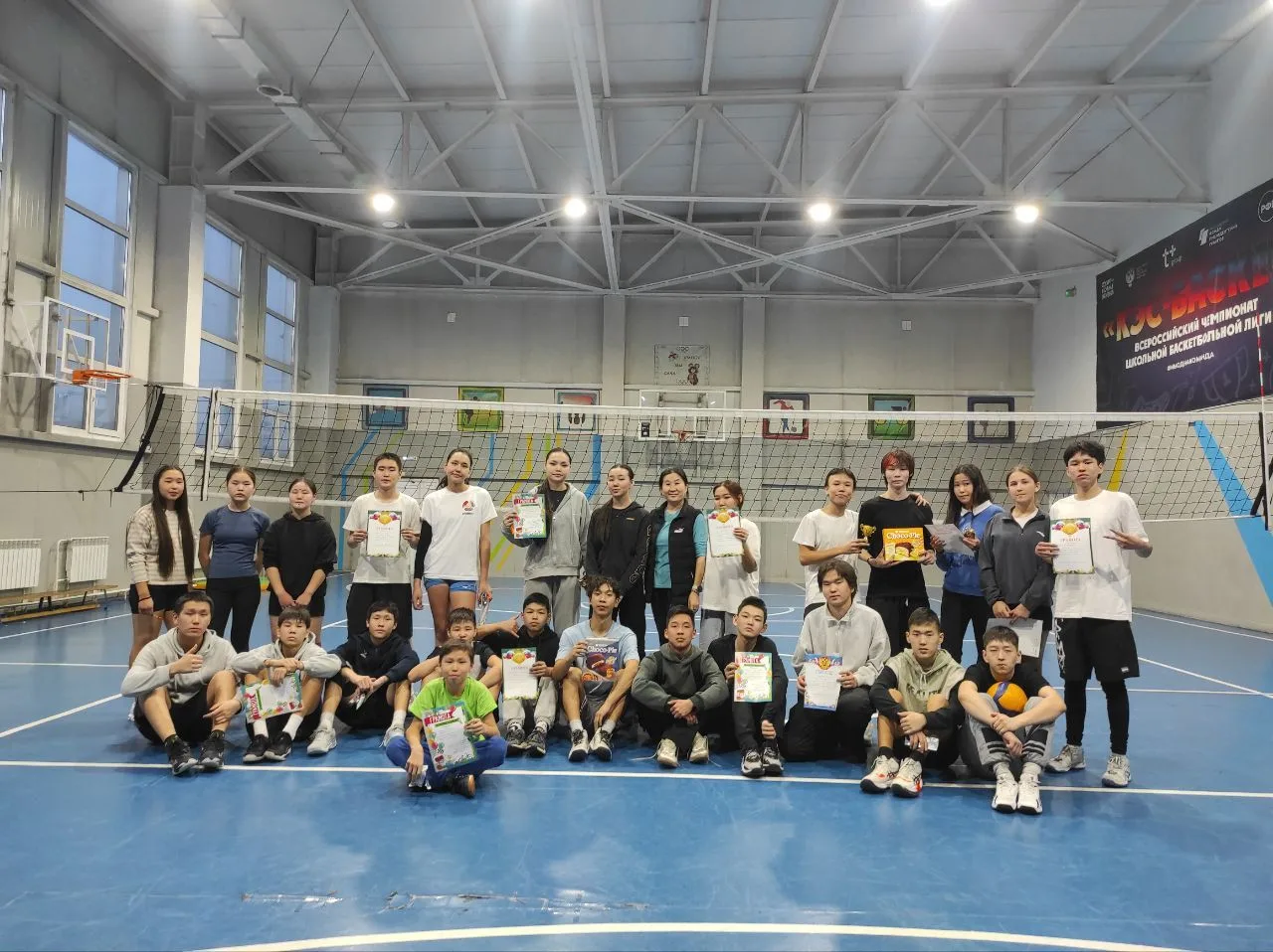 В зале царила дружеская атмосфера среди учащихся., болельщики кричали и визжали за свою сильную команду.