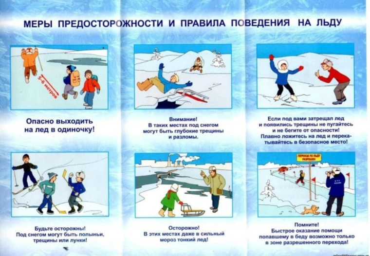 - крайне опасен лед под снегом и сугробами, а также у берега;