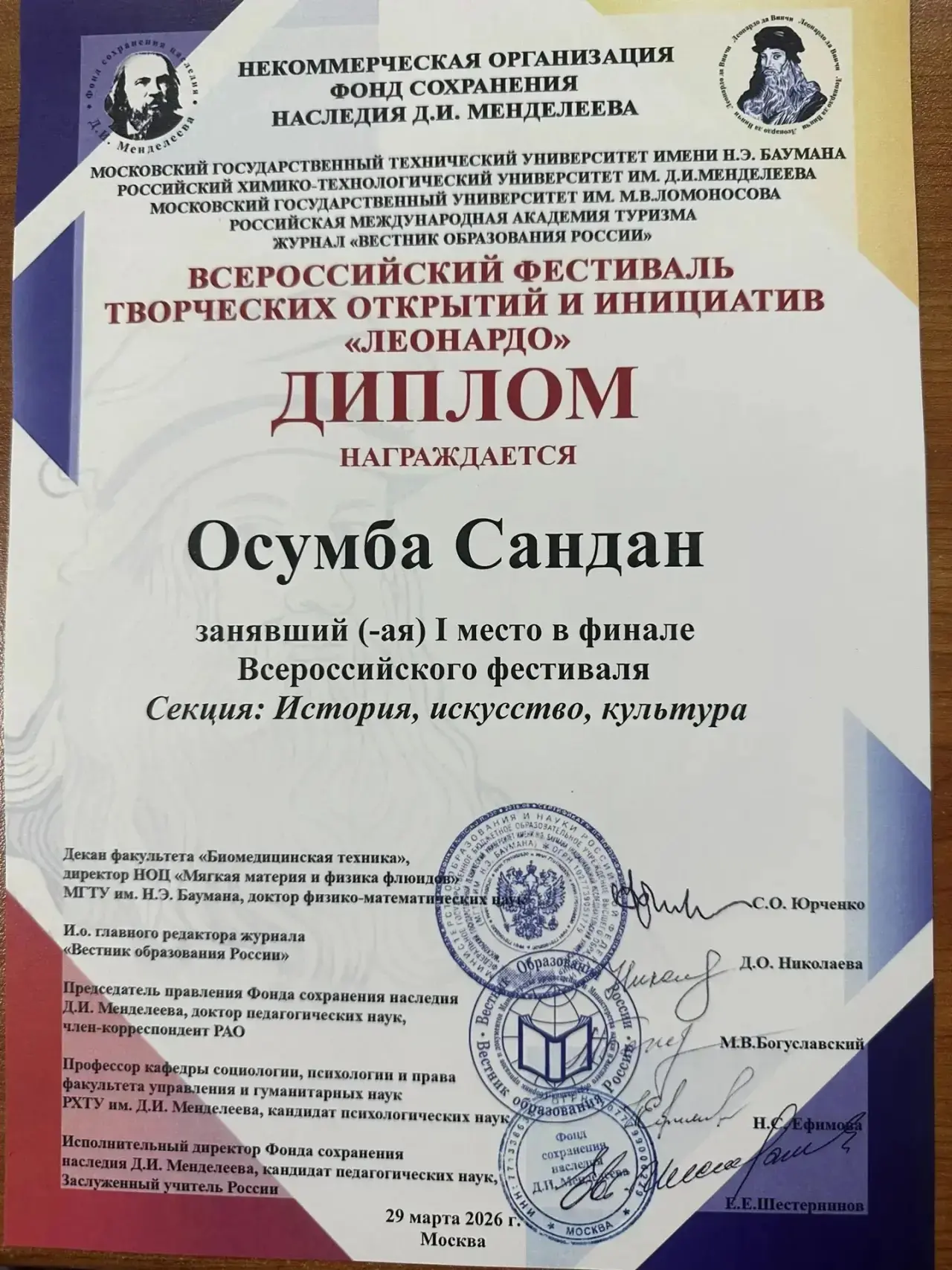 С 27 по 29 марта 2026 года в Москве прошел финал Всероссийского фестиваля творческих открытий и инициатив «Леонардо».