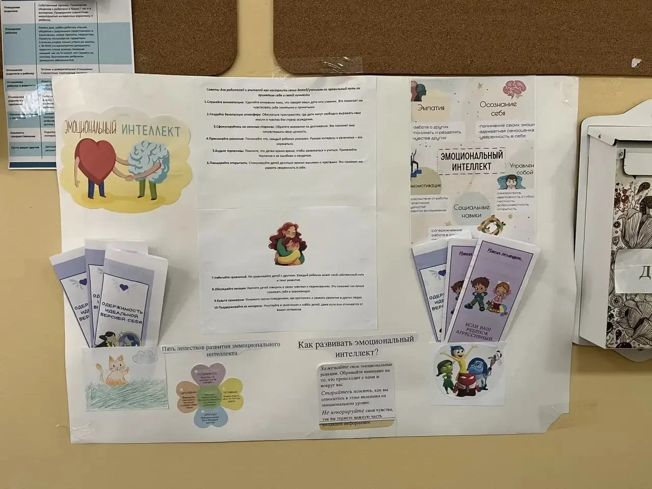 Для родителей была организована не только дистанционная, но и визуальная просветительская работа. В здании школы обновлены информационные стенды, на которых размещены актуальные памятки по вопросам детской психологии, безопасности в сети и возрастным особенностям школьников.