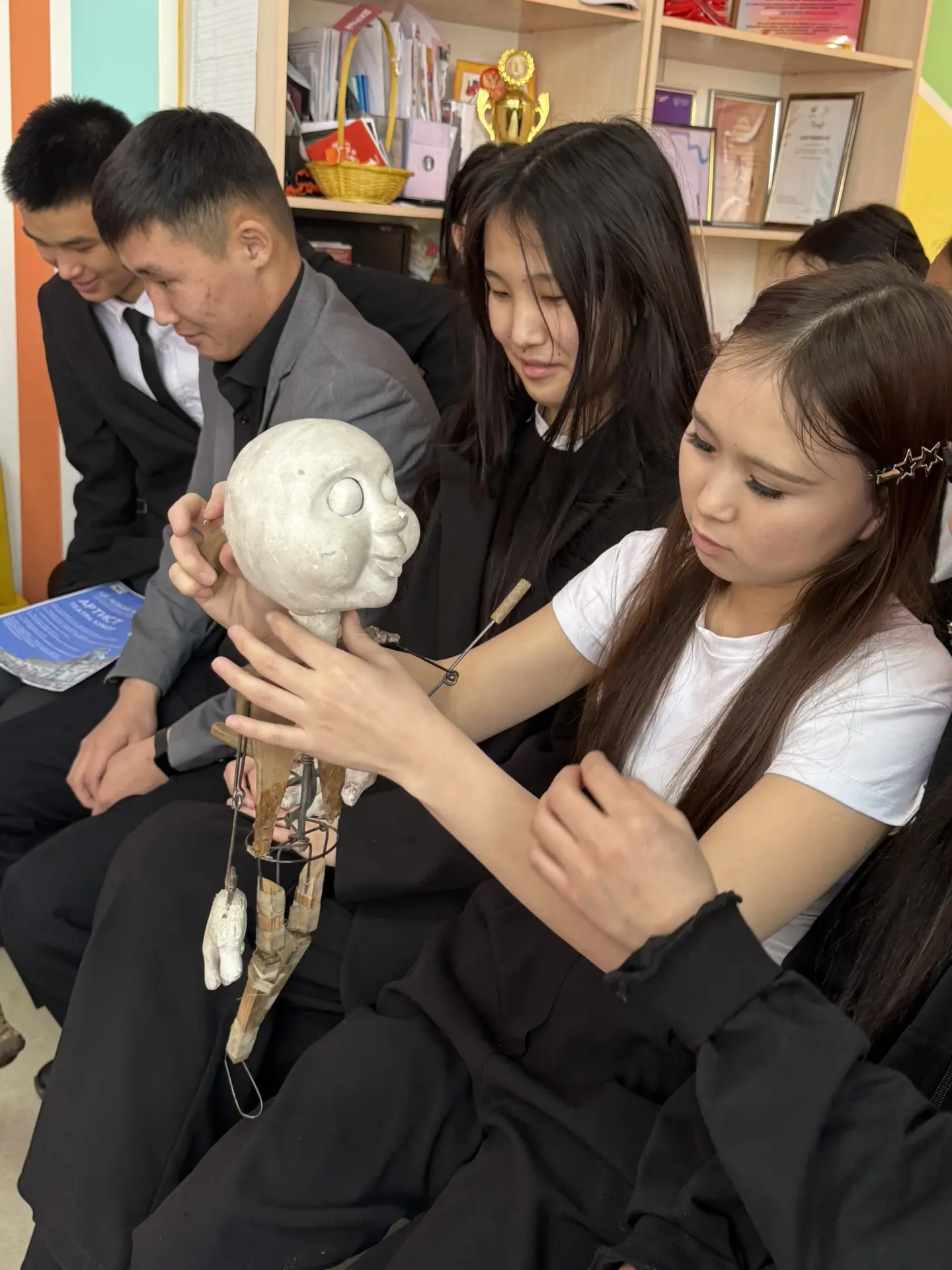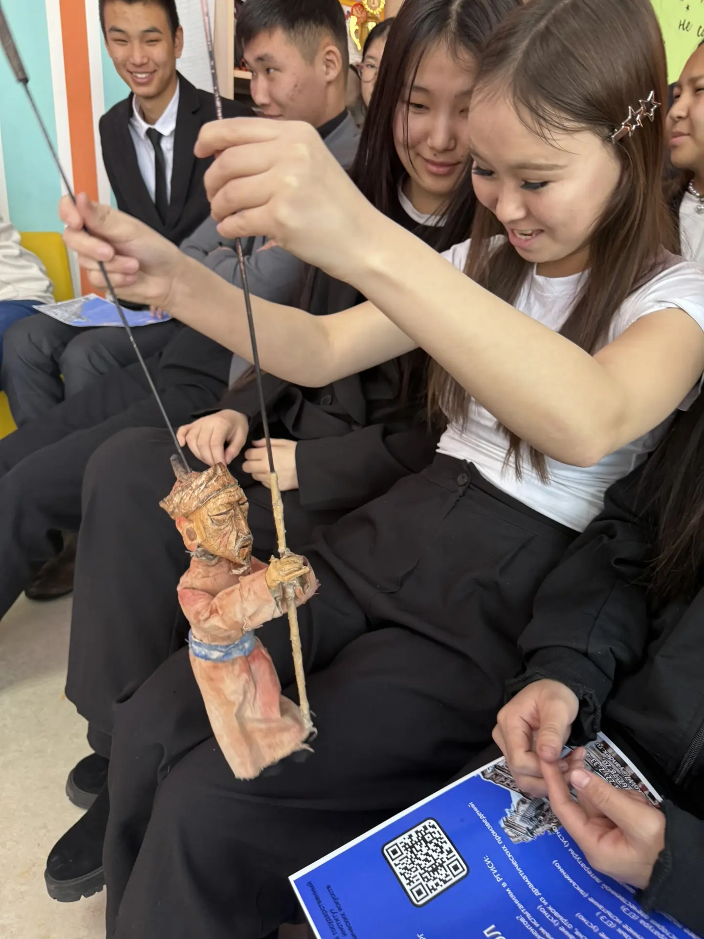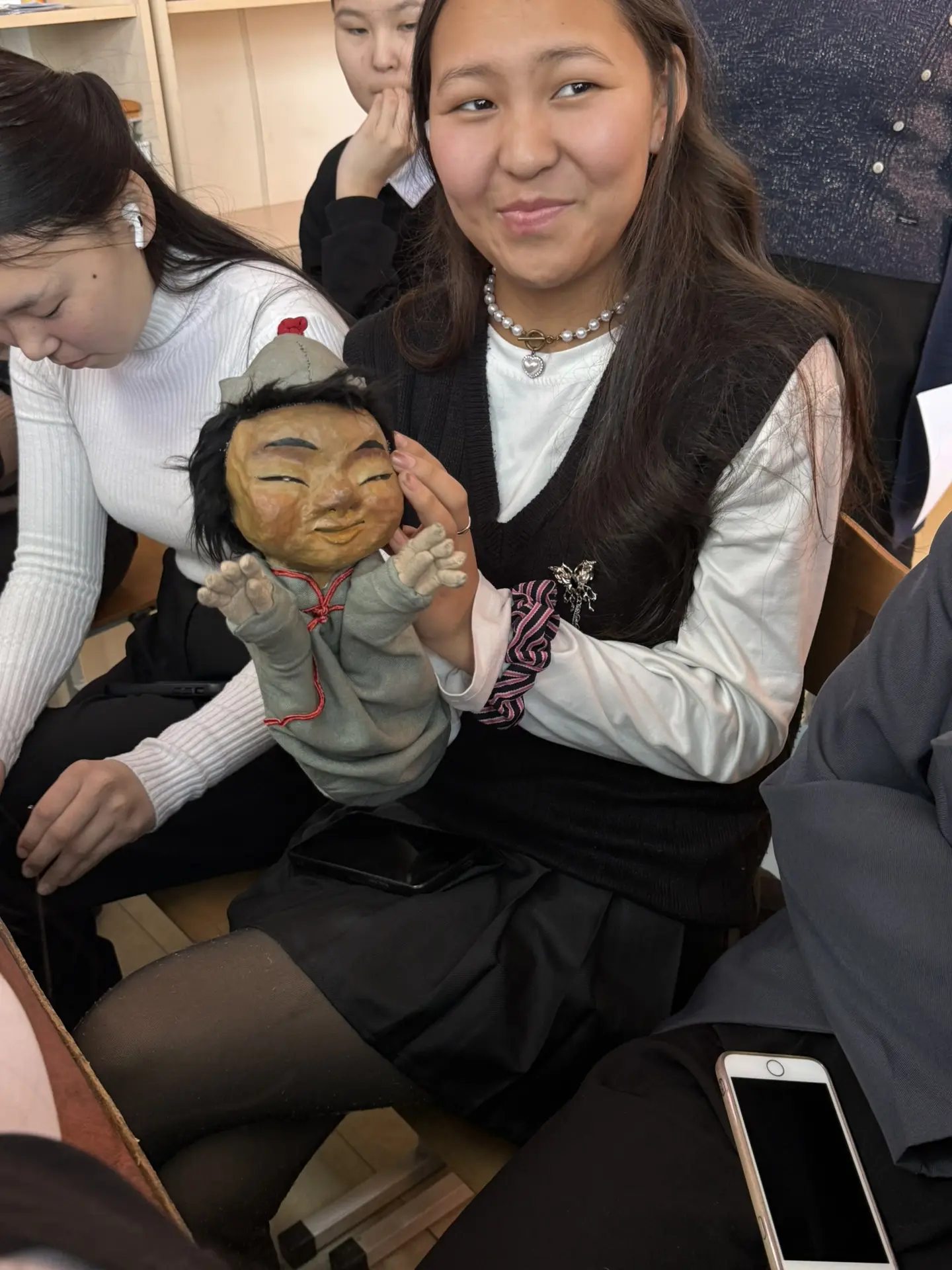 С целью знакомства ребят с искусством кукольного театра сегодня в нашей школе прошла встреча с артистами театра кукол под руководством Чадамба А.Ч. - выпускника нашей школы, художественным руководителем, актёром, режиссёром Тувинского государственного театра кукол и актерами театра кукол Ооржак А.О. и Монгуш А.Э.