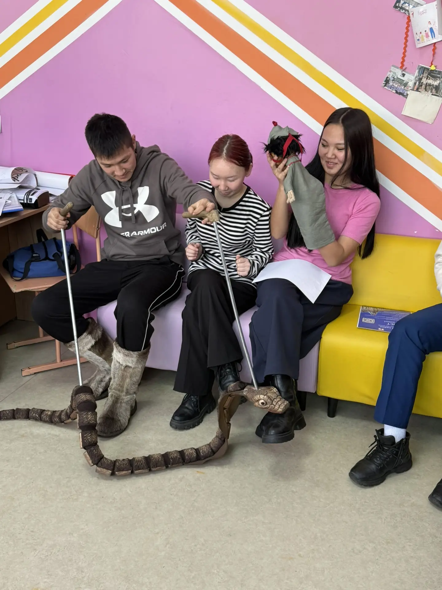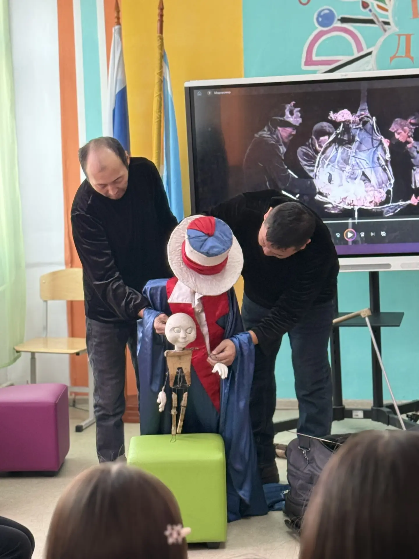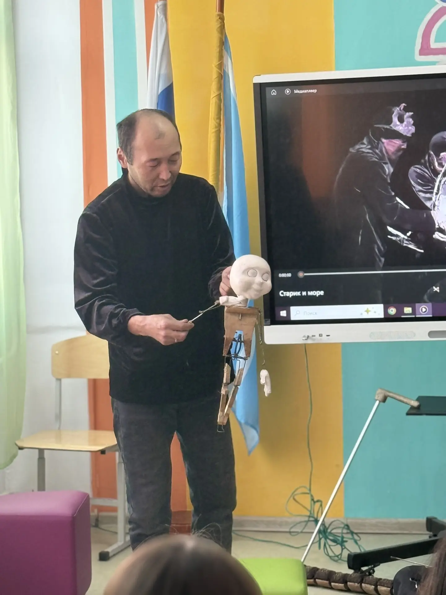 С целью знакомства ребят с искусством кукольного театра сегодня в нашей школе прошла встреча с артистами театра кукол под руководством Чадамба А.Ч. - выпускника нашей школы, художественным руководителем, актёром, режиссёром Тувинского государственного театра кукол и актерами театра кукол Ооржак А.О. и Монгуш А.Э.