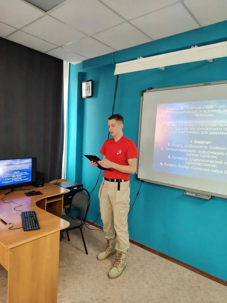 Дрюмова Егора, ученика 8 "А" класса, занявшего 2 место с докладом на тему "Солёные озера Хакасии". Егор представил глубокое исследование уникальной природы нашего края, показав отличное знание геологии и экологии региона! 🏞️