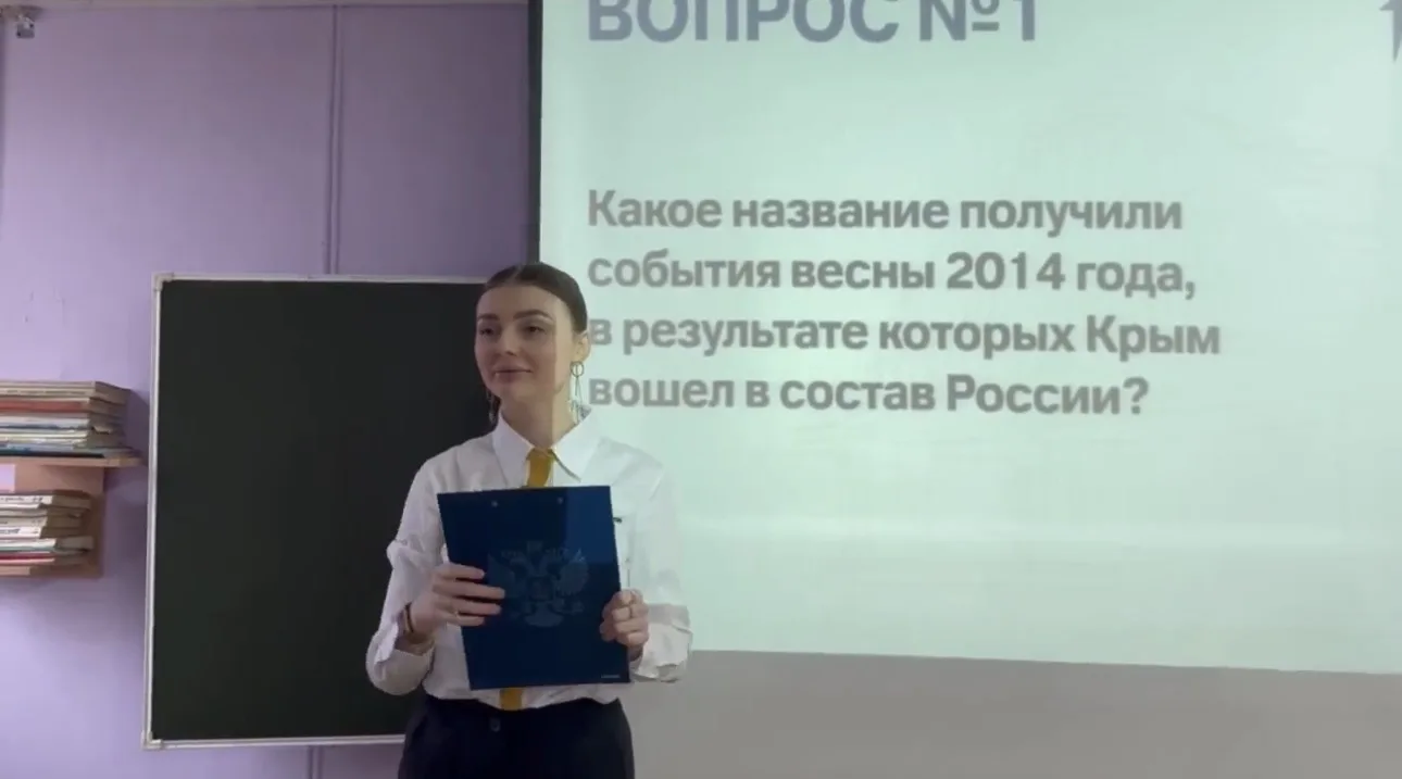 Ученики активно вспоминали ключевые события 2014 года, отвечали на вопросы о героях-референдуме, символах Крыма и единстве народов.