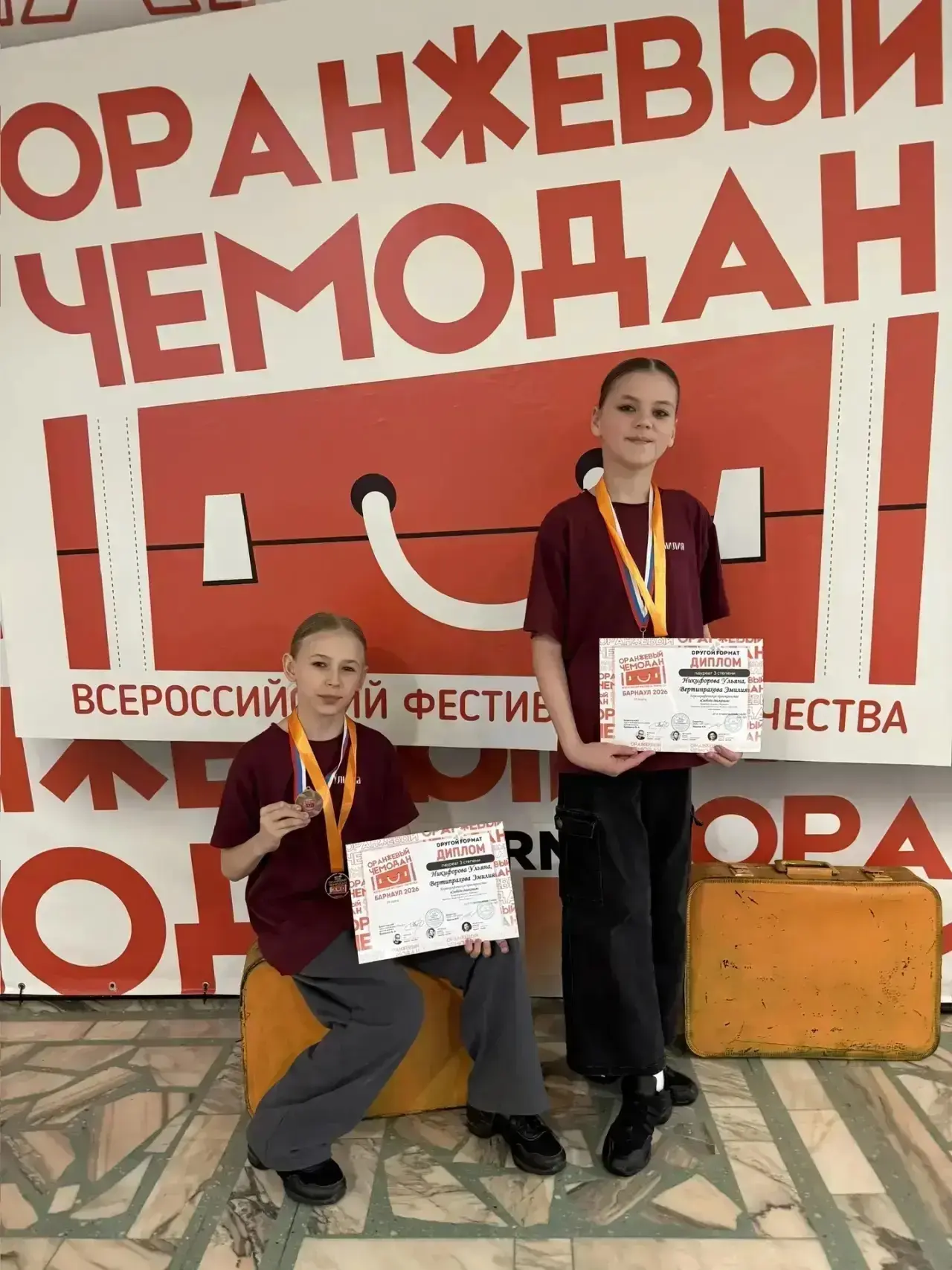 Никифорова Ульяна и Вертипрахова Эмилия, ученицы 5 «В» класса, стали лауреатами 3 степени во Всероссийском фестивале творчества «Оранжевый чемодан»! 🏆