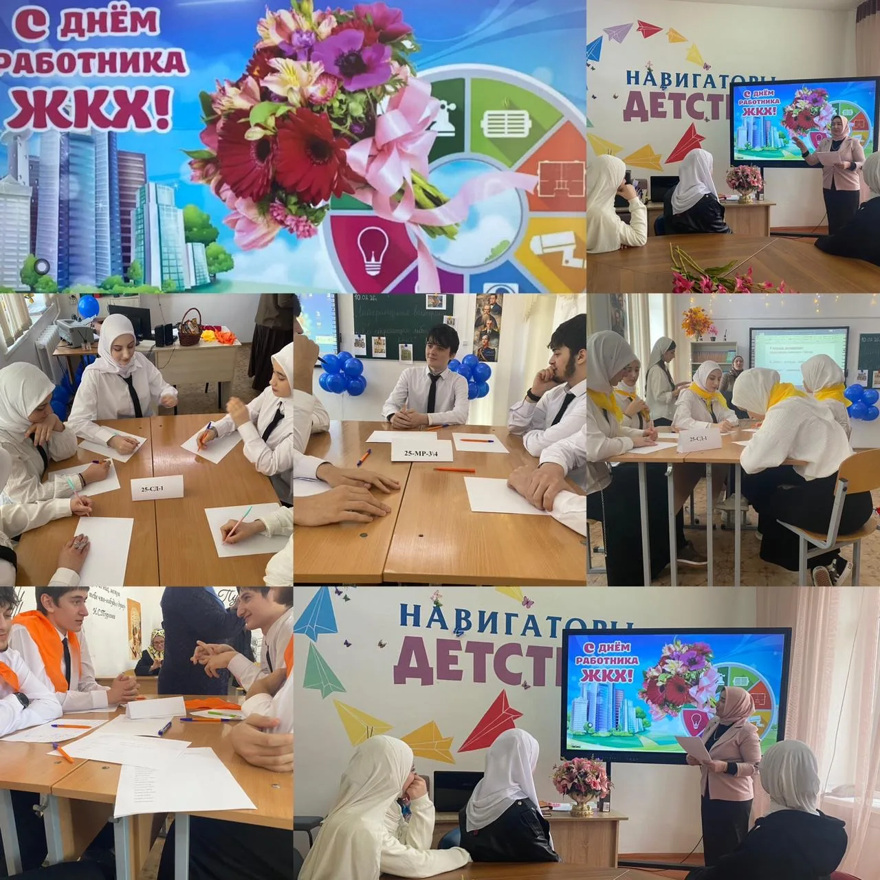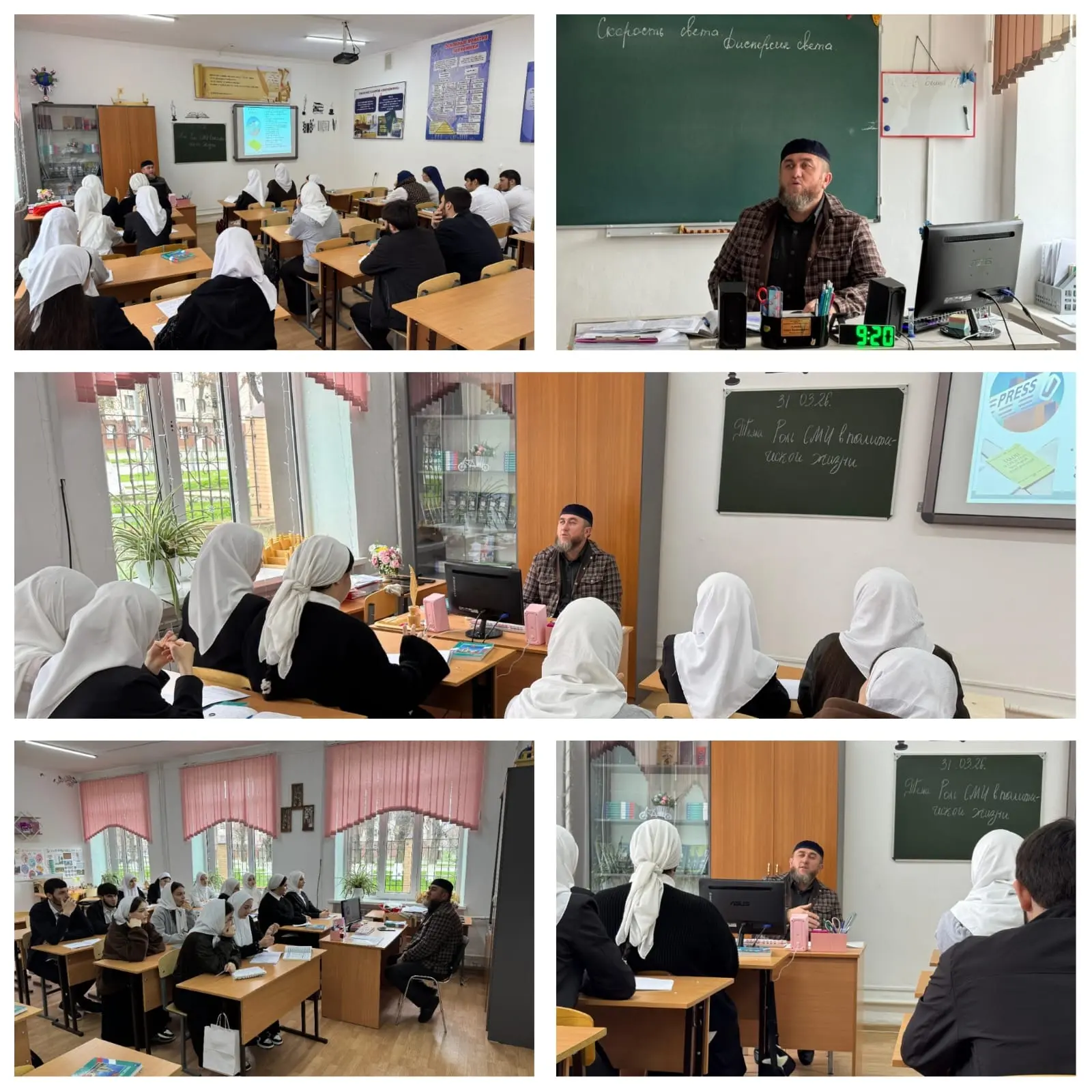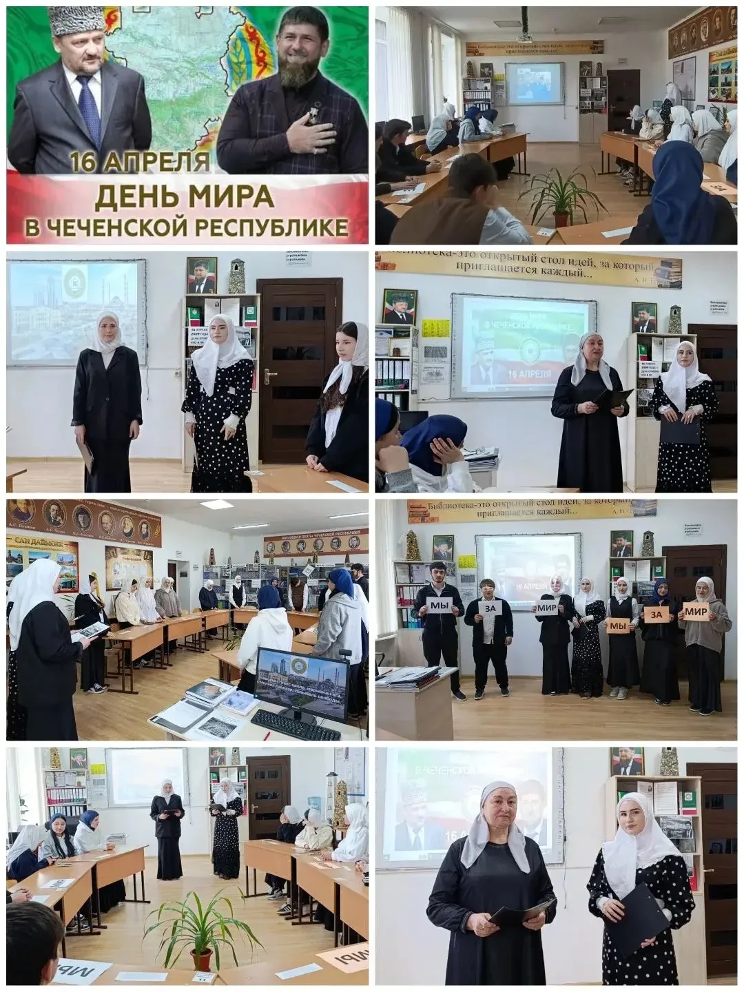 Преподаватель Бисултанова Фариза Хасиновна и педагог-библиотекарь Сулиманова Хава Шахидовна с помощью Студентки группы 25-ЭК-1, старосты группы 25-ЭК-1 Масаевой Танзилы которая выступила с докладом ,,17 лет - День отмены КТО в Чеченской Республике - День мира!", а также приняла активное участие в обсуждении и подведении итогов мероприятия вместе с другими студентами группы 25-ЭК-1.