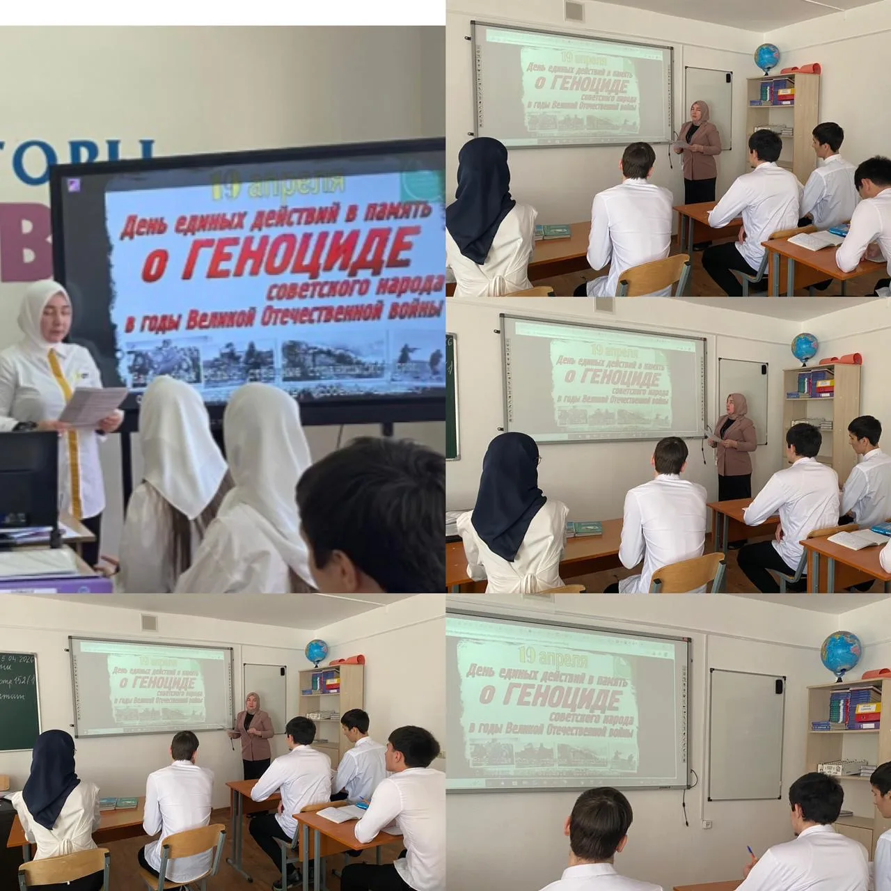 Студентки группы 24-СД-2к Османова Суряна В. выступила с докладом о Бухенвальдском восстании; Насаева Иман А. помогла собрать материалы урока.