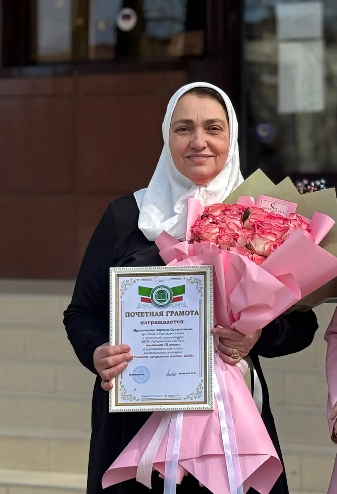 Рады сообщить, что учитель чеченского языка Мустапаева Зарема Султановна заняла III место на муниципальном этапе конкурса «Лучший учитель чеченского языка».