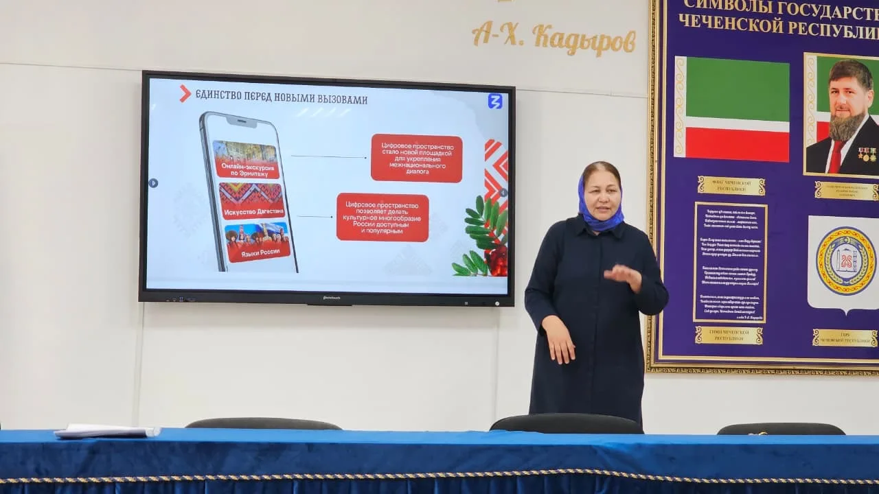 В нашей школе состоялась значимая и познавательная встреча. С лекцией на тему единства народов России к нам в гости приехала проректор ИРО ЧР Ялакаева Индира Анатольевна — лектор Российского общества «Знание».