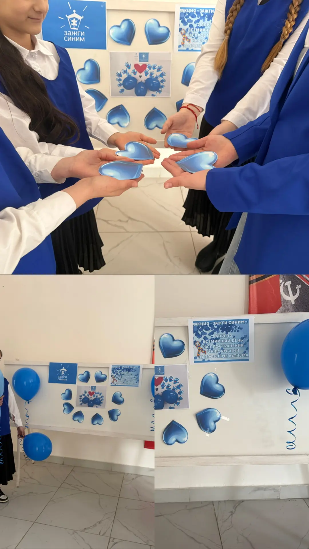 Символ: синий цвет — часто используемый символ, олицетворяющий спокойствие и надежду. Также старшеклассники нашей школы раздали буклеты с информацией об этой важной дате и о том, как вести себя с людьми с аутизмом.