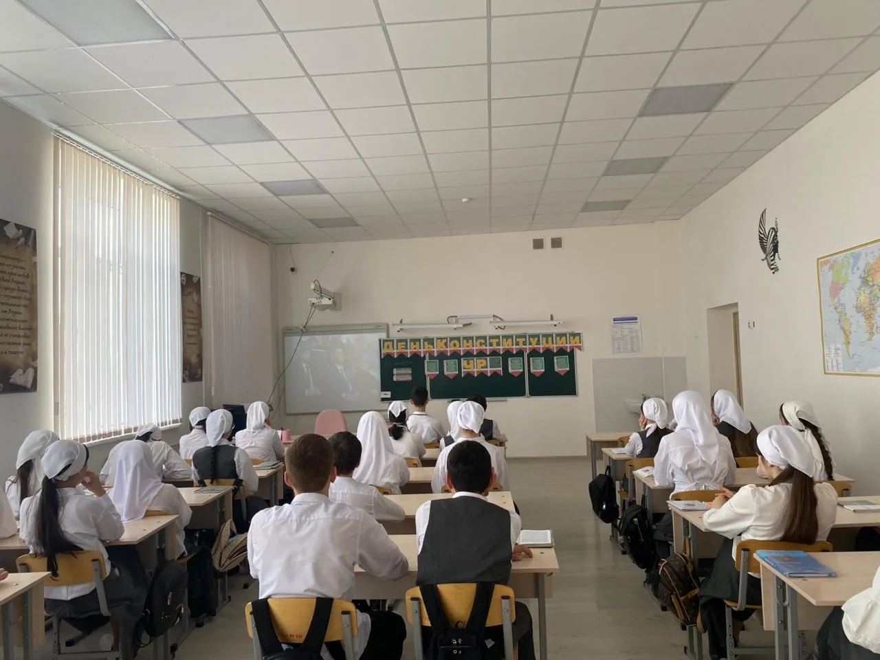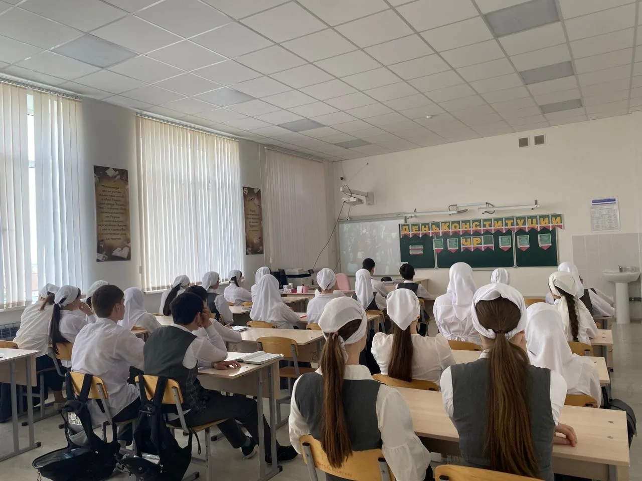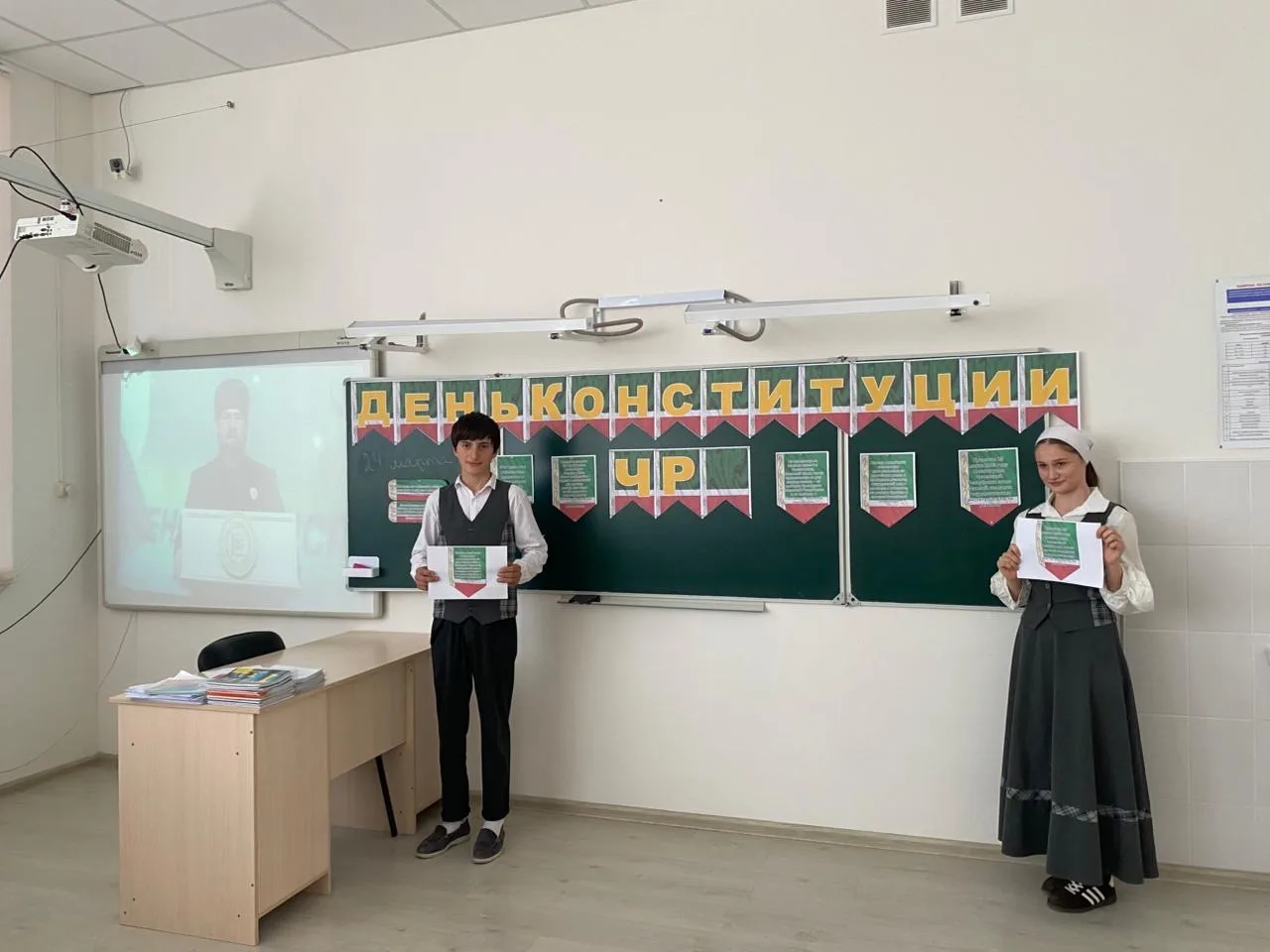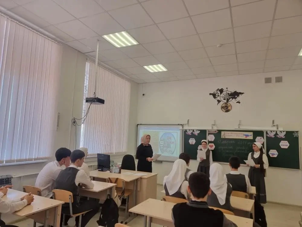 Во время классного часа ученики обсуждали важность Конституции, её роль в жизни общества и страны, а также исторический путь принятия основного закона Чеченской Республики