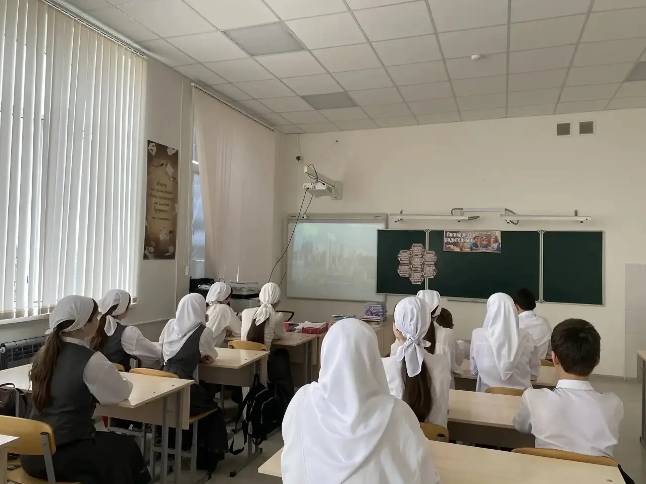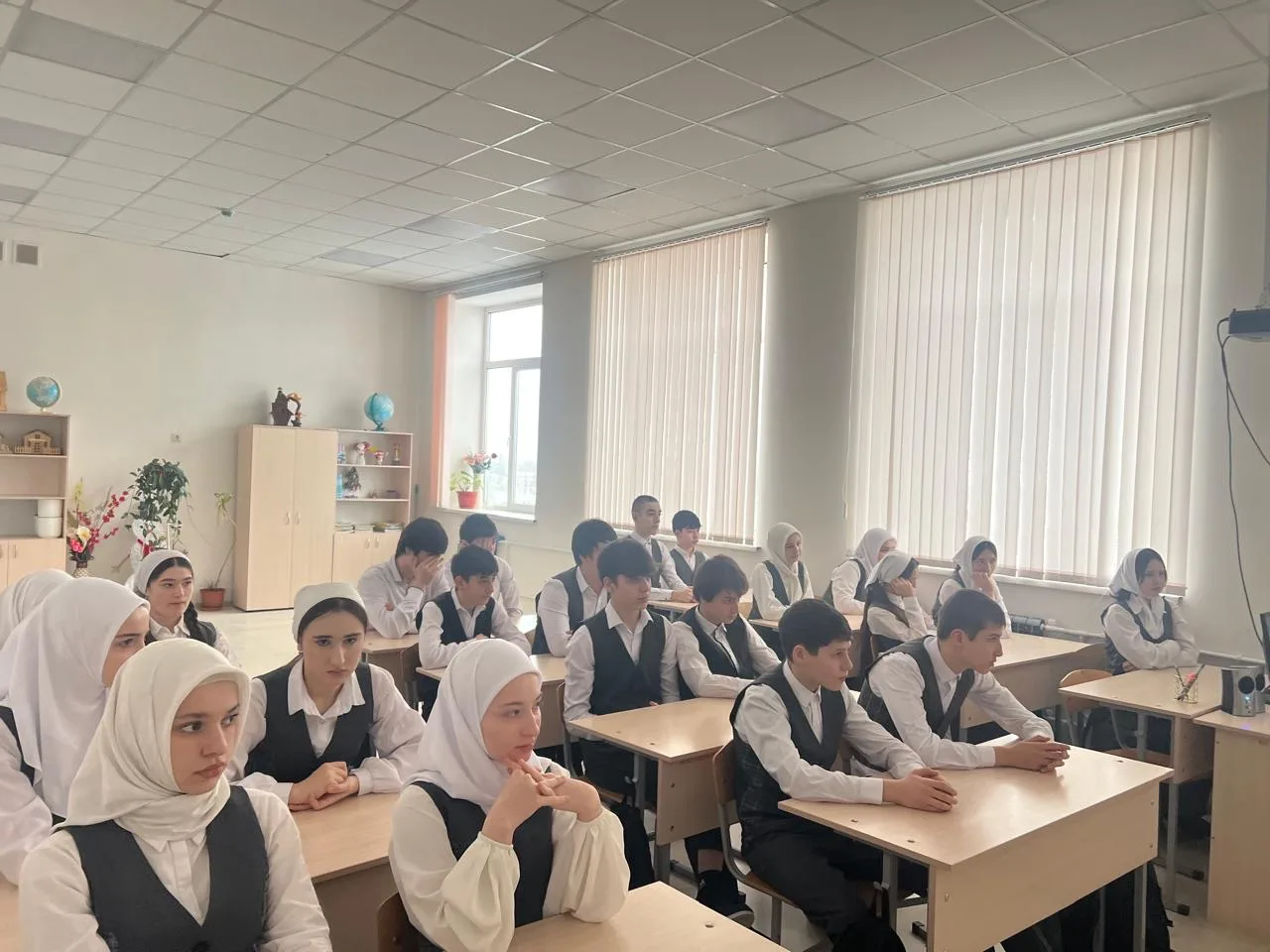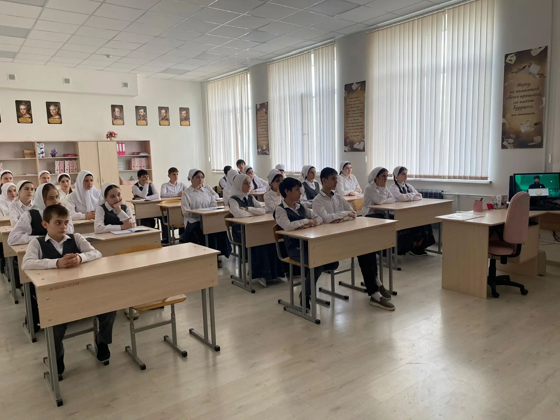 Во время классного часа ученики обсуждали важность Конституции, её роль в жизни общества и страны, а также исторический путь принятия основного закона Чеченской Республики