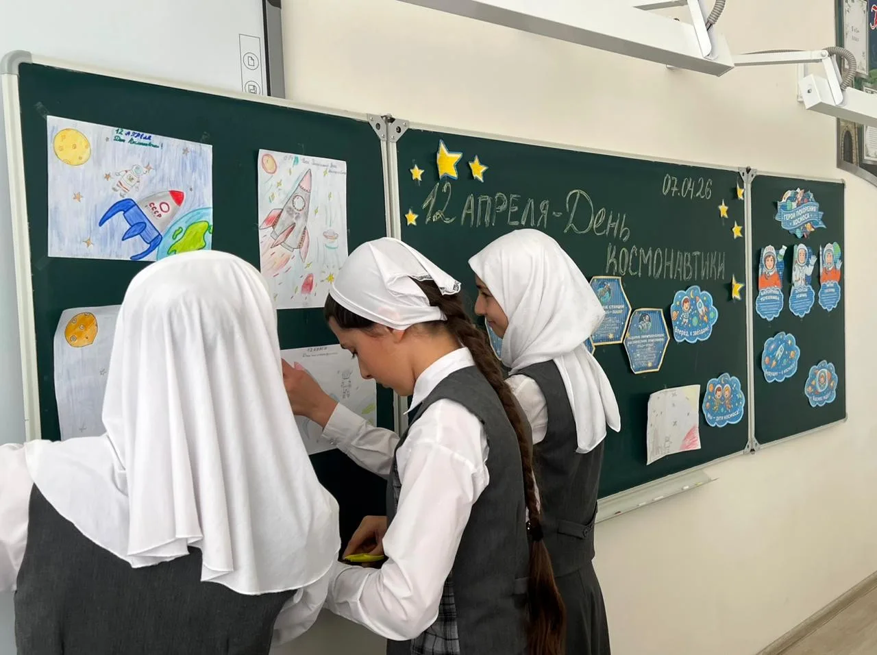 06.04.26г в МБОУ «Новотерская СОШ им. Э.Хамидова» в рамках проекта «Разговоры о важном» были проведены беседы с учащимися 5–11 по теме: «День космонавтики». В ходе мероприятий ребята узнали об истории первого полёта человека в космос, о значении этого дня для развития космических исследований и о достижениях отечественной и мировой космонавтики.