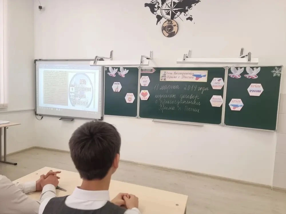 11.03.26 в МБОУ «Новотерская СОШ им. Э. Хамидова» в 9г классе прошёл классный час на тему: «День воссоединения Крыма с Россией».
