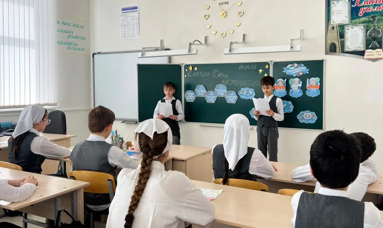 7 апреля в МБОУ «Новотерская СОШ им. Э. Хамидова» прошёл классный час, посвящённый Дню космонавтики. Учитель Хутиева Х.М. рассказала ученикам 5 класса о истории освоения космоса, великих космонавтах — Гагарине, Терешковой, Леонове — и российских достижениях в этой области. Мероприятие прошло интересно и ярко, помогая ребятам почувствовать гордость за свою страну и стимулируя интерес к науке и космосу. Ученики узнали о современных российских космических проектах, о запуске спутников и космических станциях, что вызывает у них чувство гордости за свою страну и её вклад в развитие мировой космонавтики. Мероприятие сопровождалось интересными фактами, яркими фотографиями и рассказами, что помогло вызвать в детях искренний интерес и желание узнавать больше о звёздных расстояниях и открытиях.