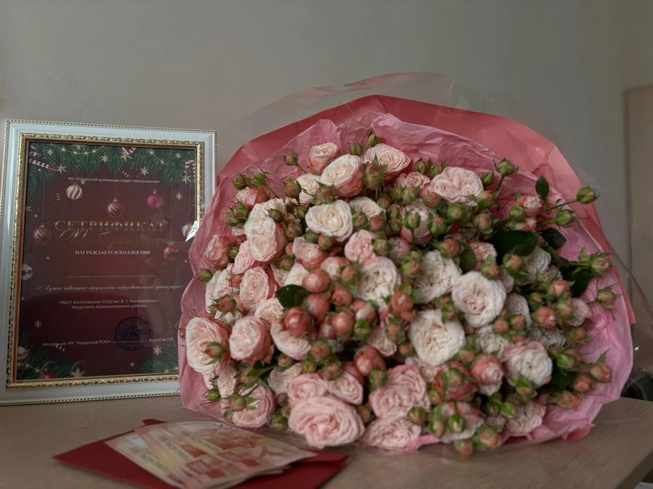 Коллектив школы выражает искреннюю благодарность начальнику МУ «Наурский РОО» Асхабову У.М. за проявленное внимание, поддержку и высокую оценку нашего труда в связи с победой в конкурсе «Лучшее новогоднее оформление образовательной организации».