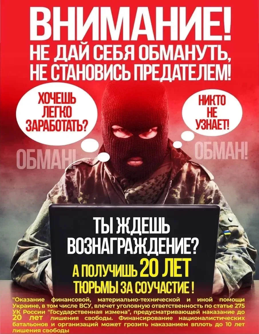 Помните: сотрудничество с ними – это государственная измена (статья 275 УК РФ), которая карается лишением свободы на длительный срок.