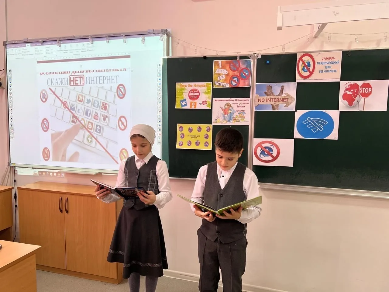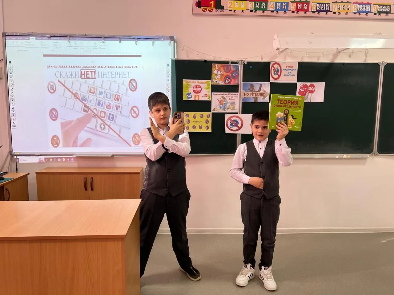 Сегодня в 4 "Б" классе прошел особенный классный час, посвященный Международному дню без интернета! 🌍✨ Этот день напомнил нам, как много интересного происходит вокруг, когда мы отвлекаемся от экранов. Мы поняли, что реальный мир полон приключений, а настоящие друзья – это самое главное! ❤️ Конечно, интернет – это важный инструмент, но иногда полезно сделать паузу и вспомнить о простых радостях жизни.