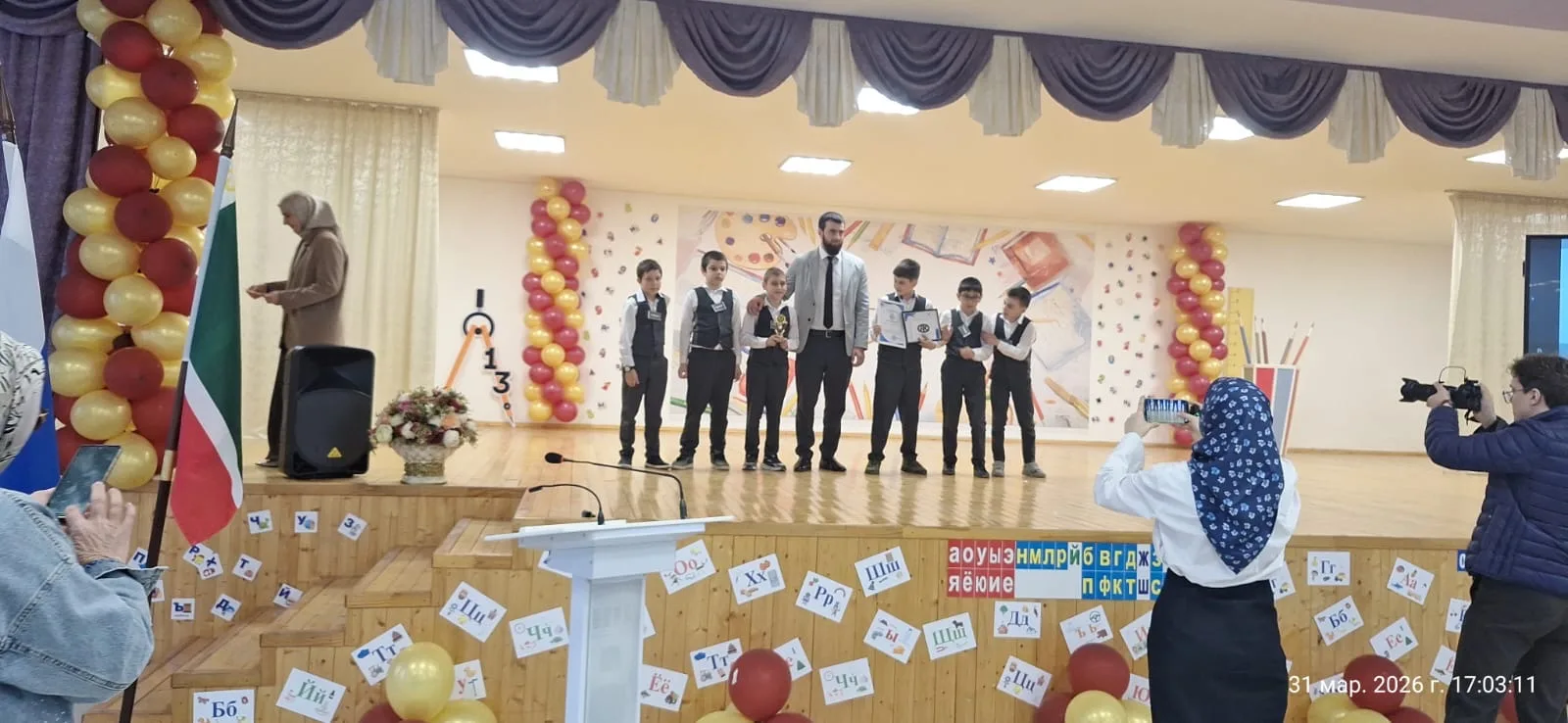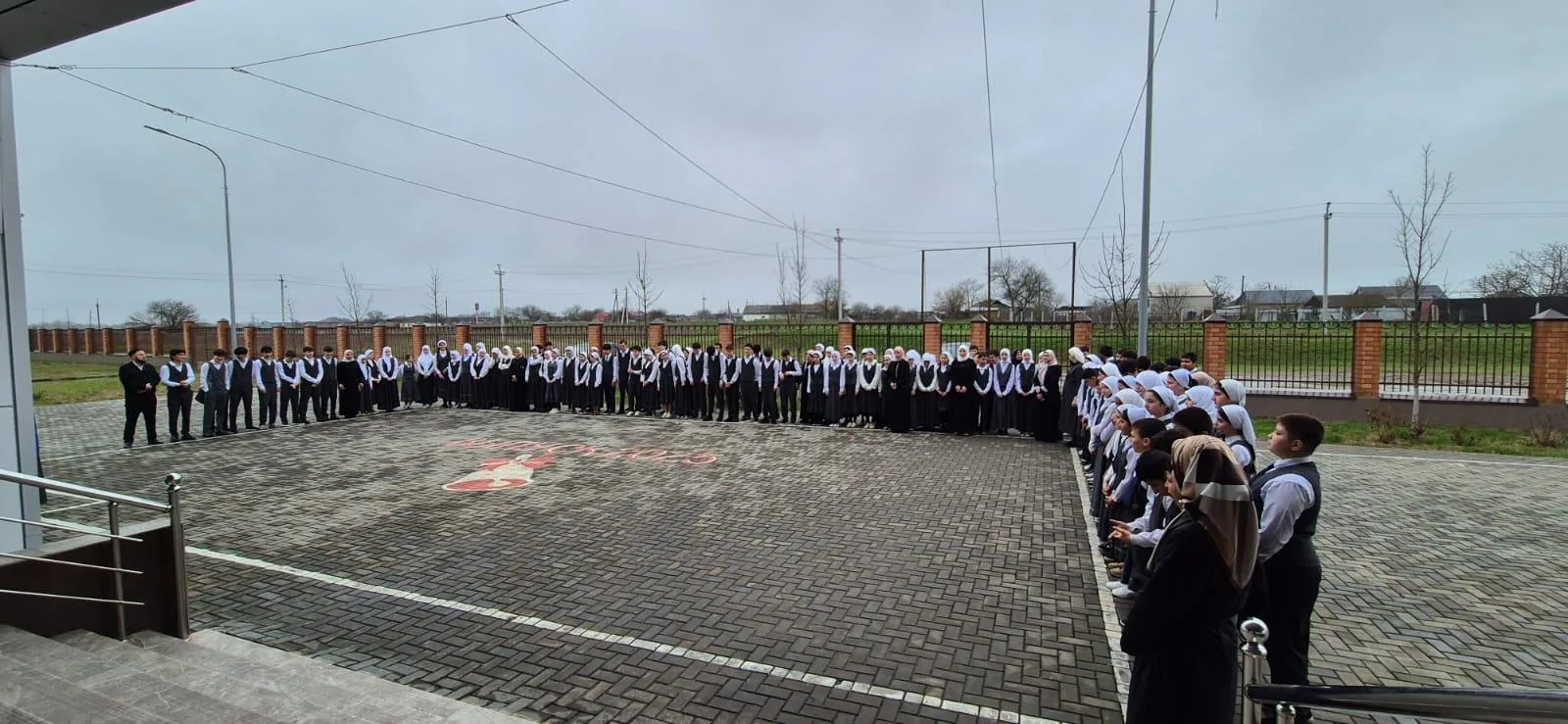 30 марта 2026 года новая учебная неделя в нашей школе традиционно стартовала с еженедельной линейки, церемонии поднятия Государственного флага Российской Федерации и исполнения гимнов России и Чеченской Республики.