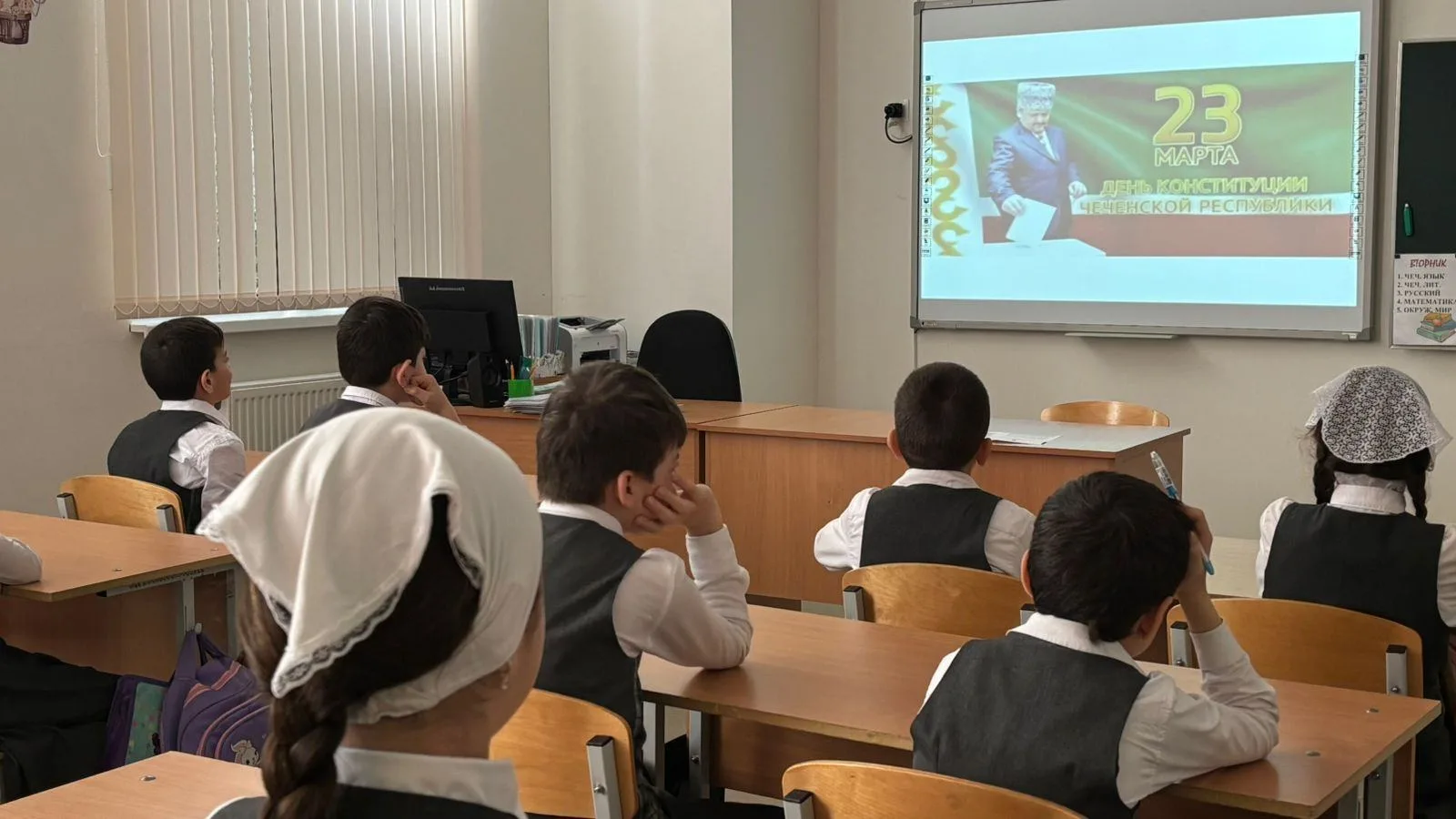 18.03.2026г в 4 «А» классе был проведён классный час на тему: «День конституции ЧР»