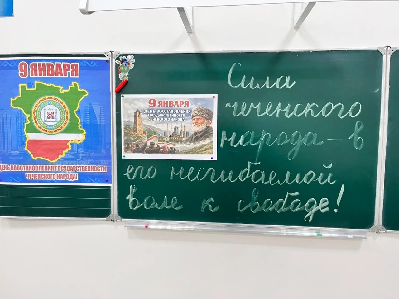 Классный час, посвященный Дню восстановления государственности чеченского народа, приурочен к 9 января 1957 года, когда был принят Указ о реабилитации чеченцев, и направлен на патриотическое воспитание, привитие любви к Родине, рассказ об истории восстановления ЧИАССР и важности единства и согласия 📚✏️