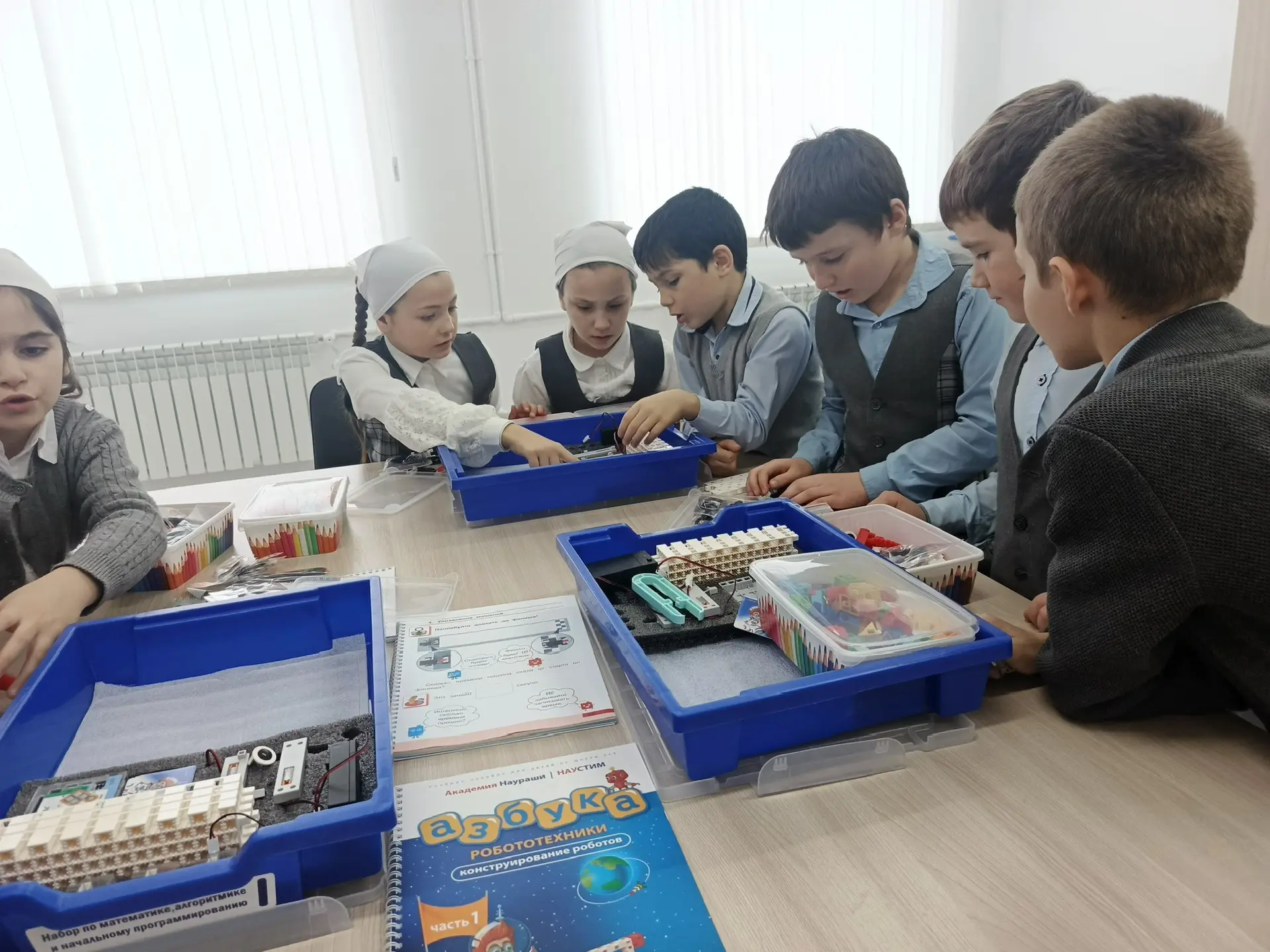 Ученики МБОУ "Новотерская НОШ им. М. Амаева" во внеурочное время занимаются робототехникой.