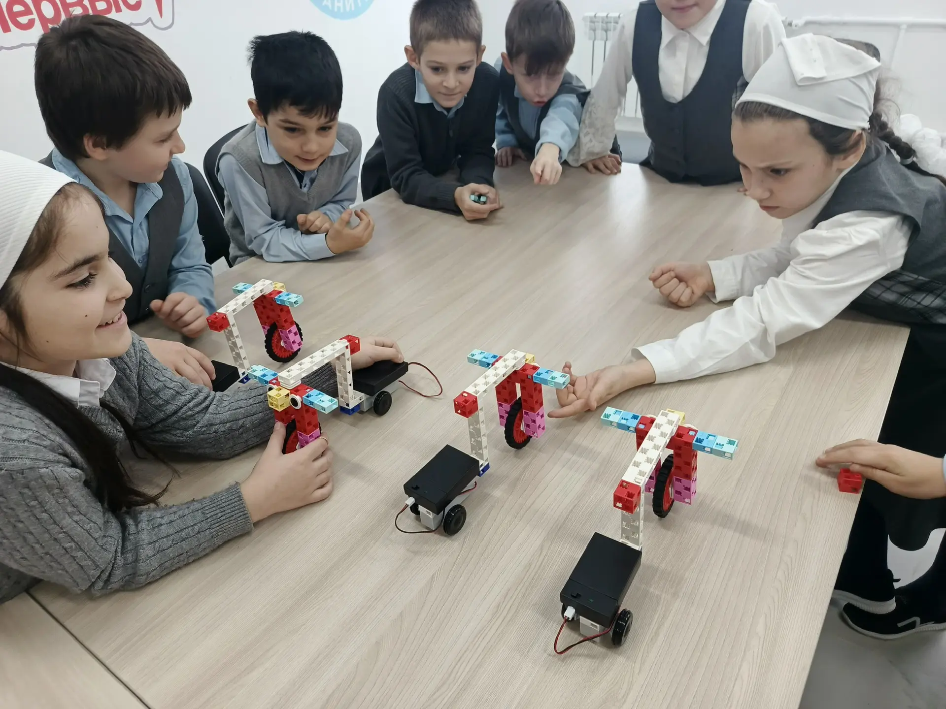 Ребята не только собрали роботов, но также провели соревнования между ними.