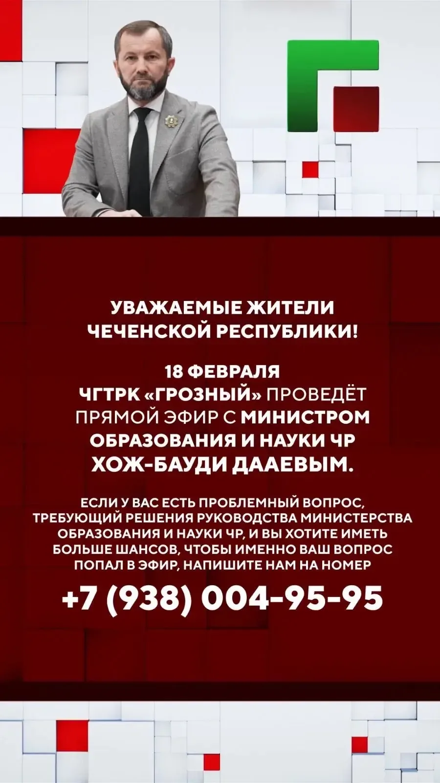 Министр образования Дааев Хож-Бауди Буарович разъясняет порядок проведения промежуточной и итоговой аттестации для детей, находящихся на семейной форме обучения (самообразовании).