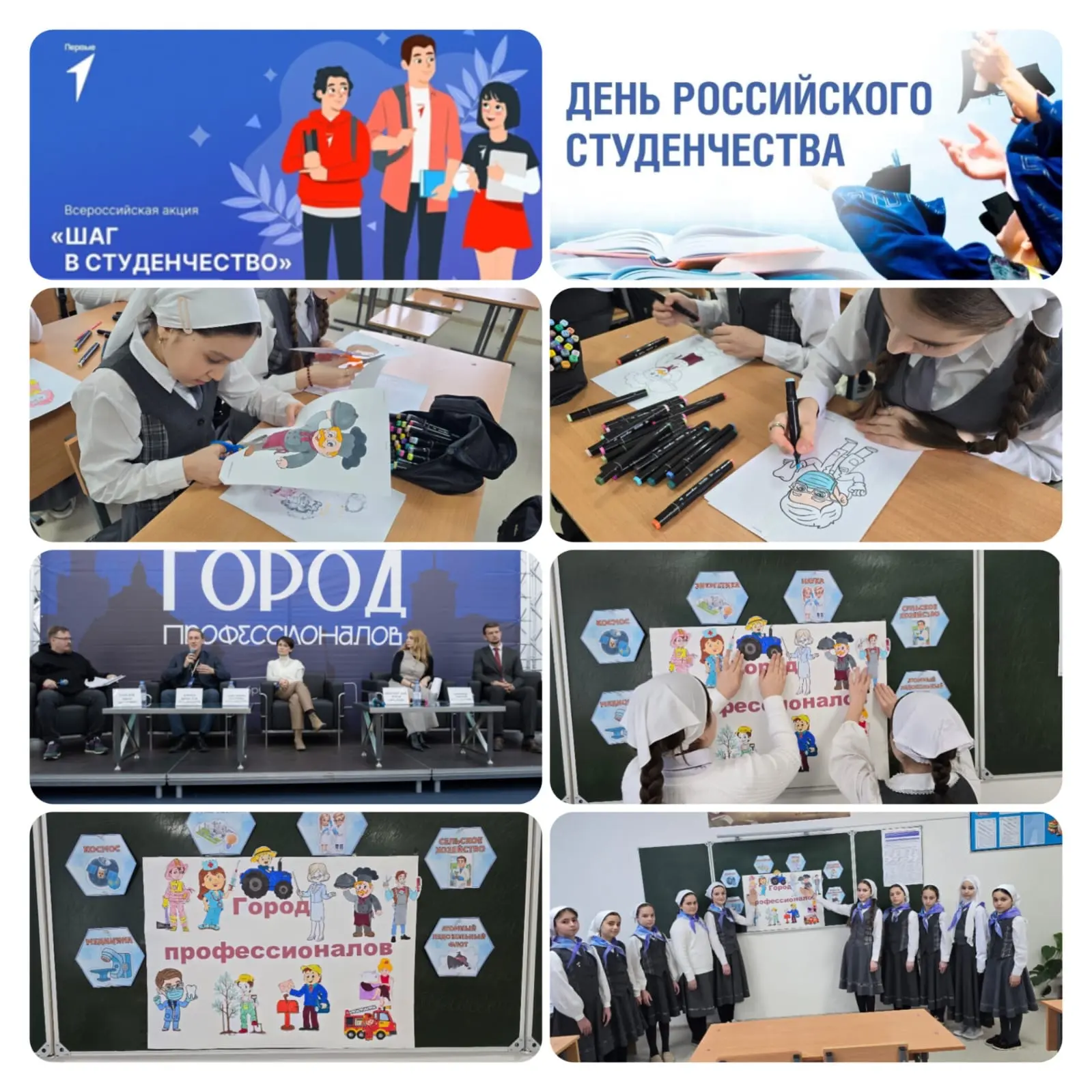💠Накануне дня российского студенчества в нашей школе прошел образовательный проект «Город профессионалов», направленный на формирование профессиональных предпочтений среди младших школьников первых–четвертых классов. Организатором выступил советник директора по воспитательной работе, координируя процесс творчества и направляя ребят в создании яркого и интересного коллажа.