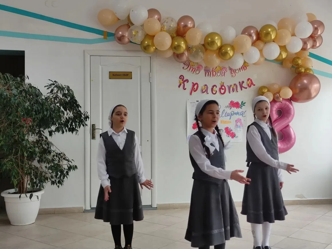 Общешкольное мероприятие, посвящённое празднованию 8 Марта, состоялось 6 марта.