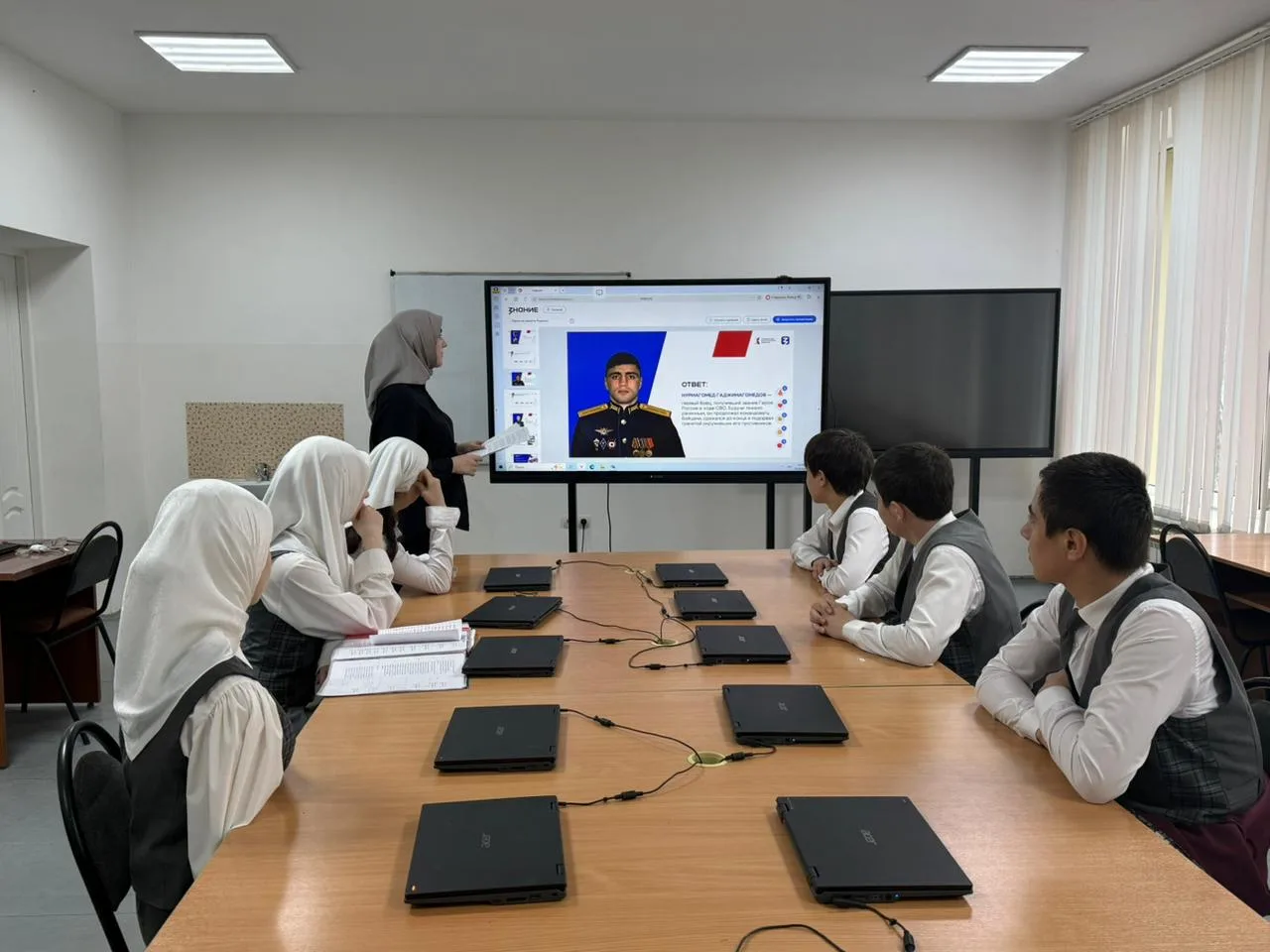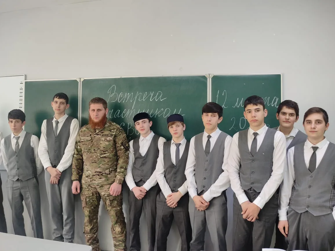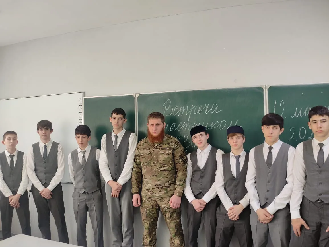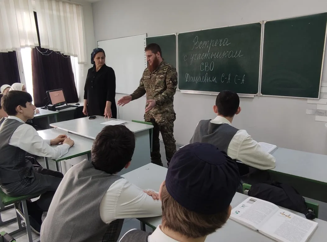 В МБОУ"СОШ№1 с. Алхазурово им. А. Сулейманова" 12 марта 2026 г. была организована встреча обучающихся 9-11 классов с участником СВО Дацаевым Сайд- Ахмедом. " Цели мероприятия : Знакомство с реалиями военной службы, развитие чувства сопричастности к истории страны. "Разговор о главном"- так можно назвать эту встречу. Это была живая беседа Героя- участника СВО с учащимися. Гость рассказал о выборе своего пути, о воинском долге и современных технологиях ведения боя. Сайд- Ахмед в период мобилизации в 2022 году одним из первых направился в зону боевых действий. Имеет боевые награды. Награжден медалью"За отвагу" Указом Президента Российской Федерации от 19 декабря 2022 года.Нагржден медалью"Участник военной операции"от 14 апреля 2025 года. В беседе Сайд- Ахмед рассказал детям, как наши бойцы, рискуя жизнью, выполняют свой воинский долг. Гость говорил о ценности человеческой жизни, о том, что значит -защищать свой дом, свою семью. В свою очередь директор школы Тасуева Л. С . поблагодарила гостя за "Урок Мужества".
