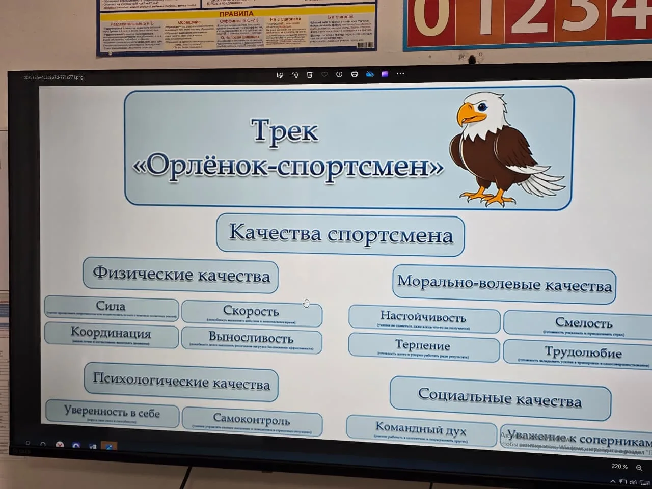 На протяжении всего трека первоклассник узнавал о новых видах спорта, выучил правила здорового образа жизни, делал зарядку.
