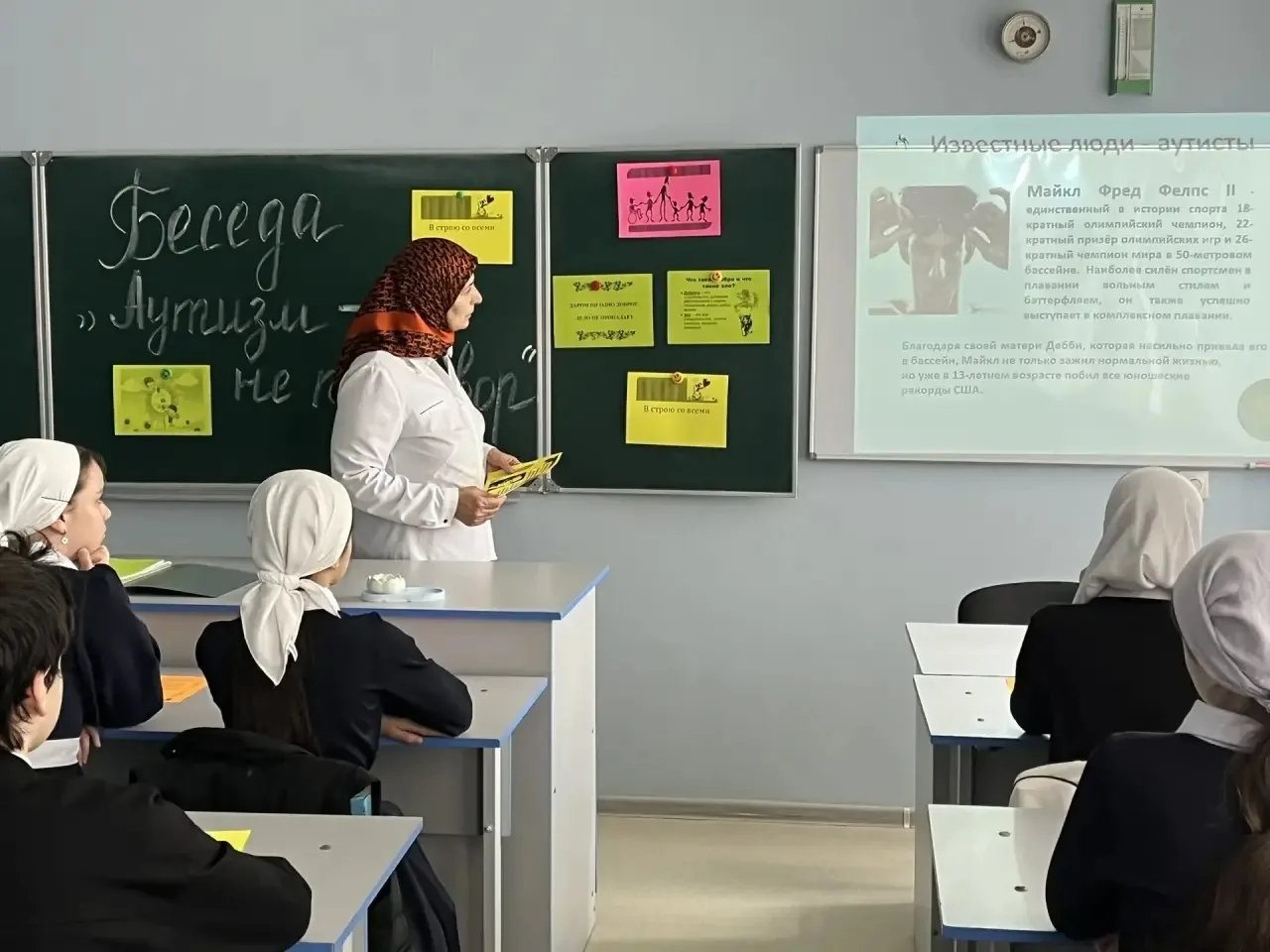 🏫МБОУ «СОШ № 2 с. Алхазурово» присоединилась ко всему миру, и педагог-психолог провела беседу с учащимися на тему «Аутизм не приговор» в знак солидарности к особенным детям. Джукалаева Л.М. рассказала учащимся о проблемах детей-аутистов, как реагировать на поведение особенных детей в общественных местах.