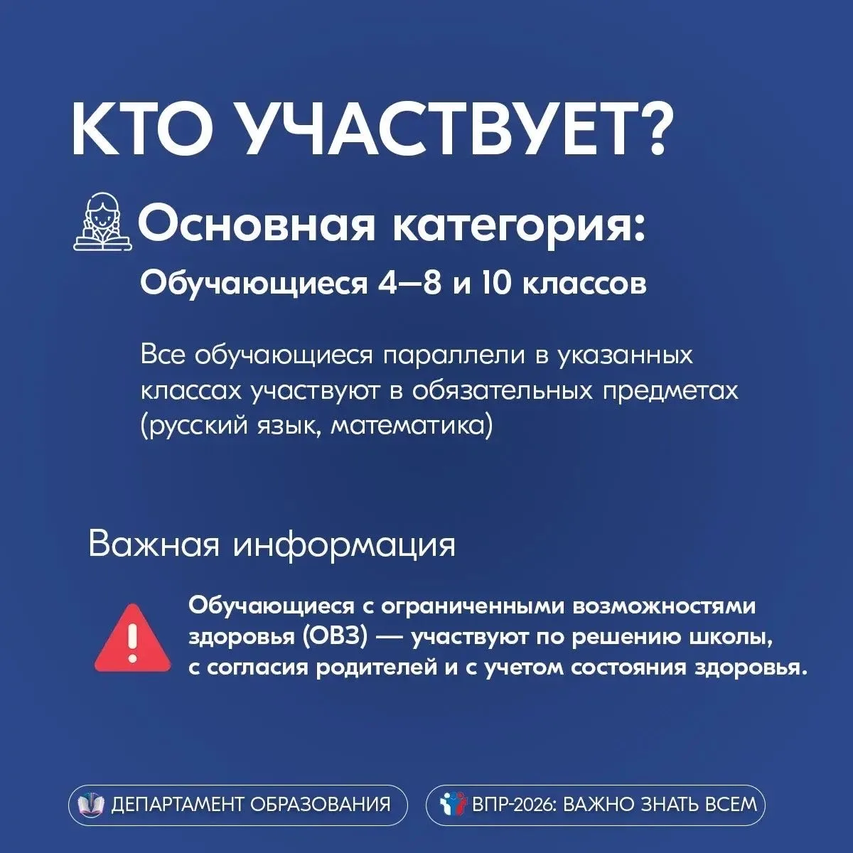 Скоро стартует период ВПР — с 20 апреля по 20 мая. Работы пишут ученики 4–8 и 10 классов по русскому языку, математике и другим предметам, которые определяет ФИОКО. Это не экзамены, а проверка знаний, чтобы понять, где всё хорошо, а где нужна поддержка.