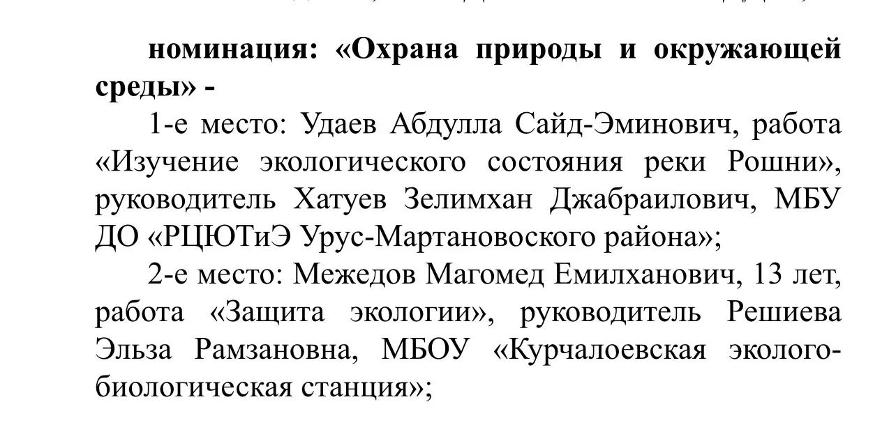 Обучающийся Удаев Абдулла под руководством заместителя директора по информатизации Хатуева Зелимхана ведёт работу над исследовательской работой, направленным изучение экологического состояния реки Рошни.