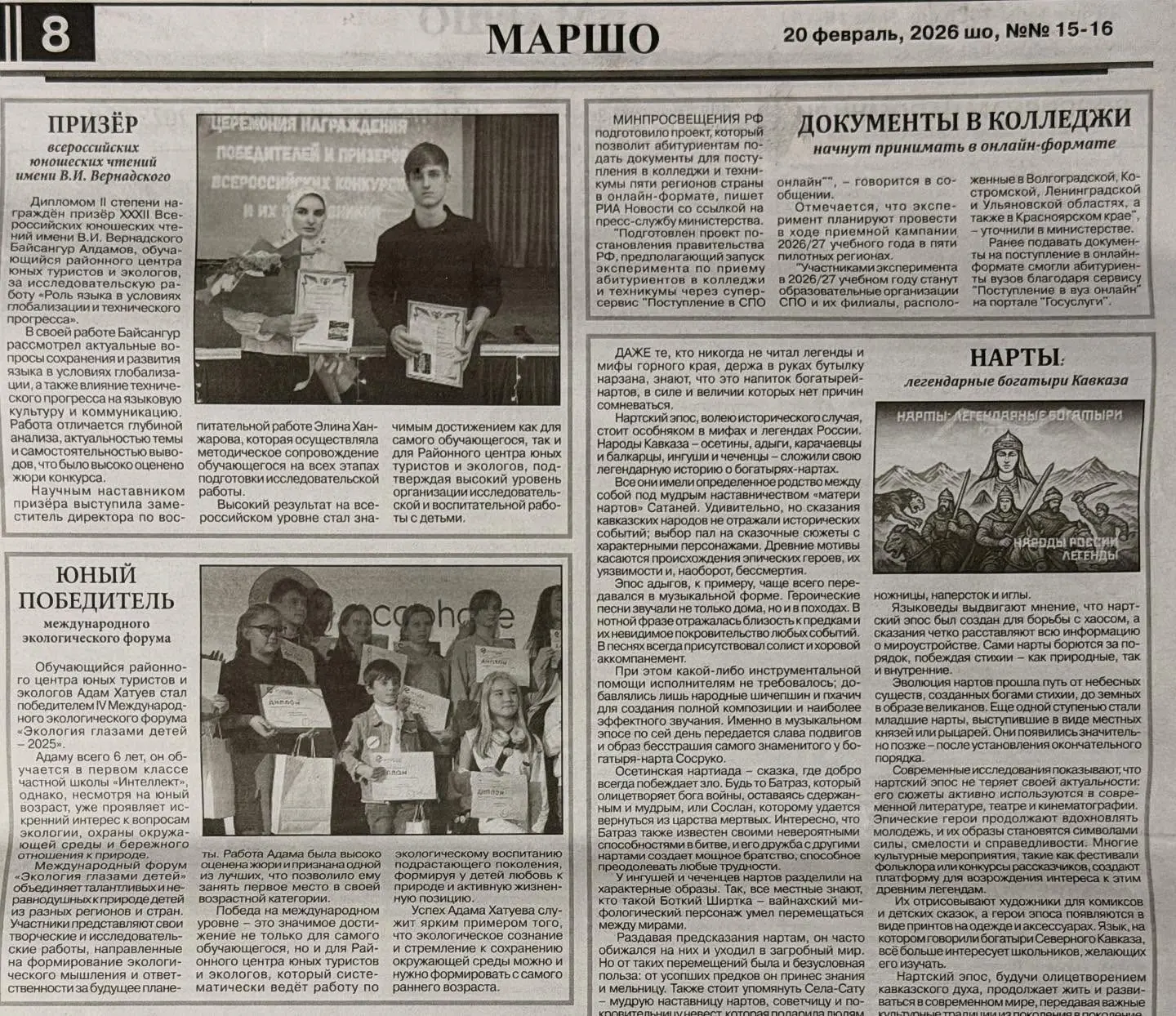 Редакция газеты «Маршо» подготовила отдельные материалы о каждом из ребят, отметив их заслуги на всероссийском и международном уровнях. Поздравляем Адама и Байсангура с заслуженным признанием!