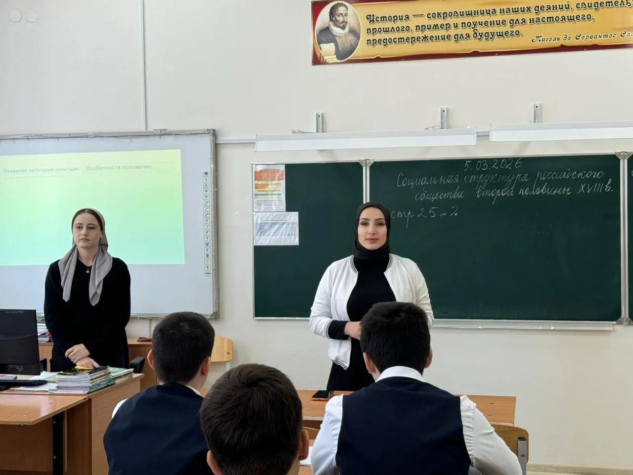 Учитель истории Яхита Имрановна провела и подготовила содержательный и проникновенный Урок мужества вместе с ребятами молодежного движения «АХМАТ». В ходе встречи школьники узнали о примерах истинного героизма, стойкости духа, любви к Родине и ответственности за её будущее.