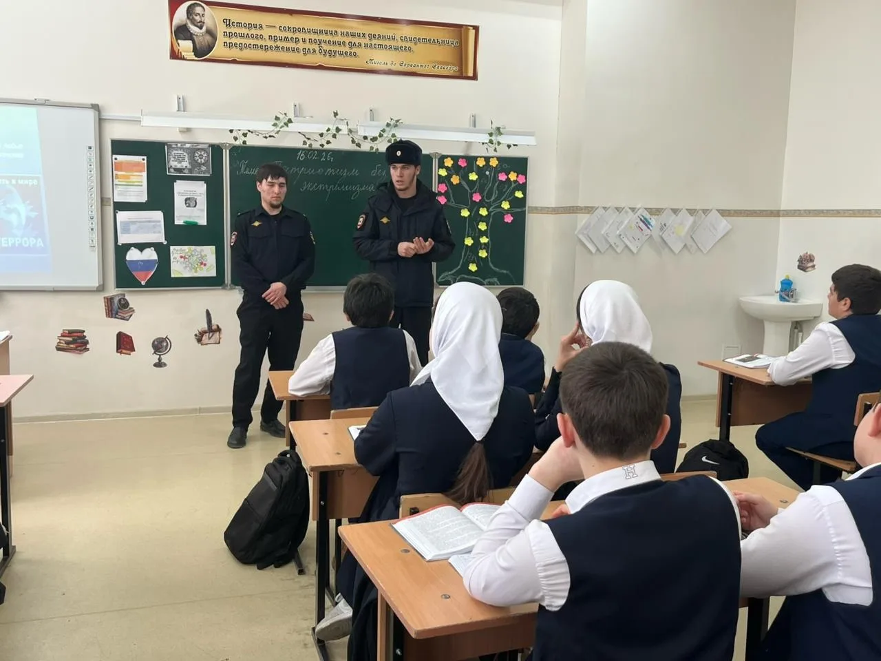 16 февраля 2026 года в МБОУ «СОШ №11 г. Урус-Мартан» социальным педагогом Эльбердовой А. С.-М. совместно с инспекторами ПДН была проведена профилактическая беседа с обучающимся 8 класса на тему «Патриотизм без экстремизма».